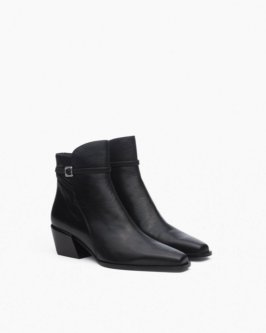 The Joni Buckle. Our iconic ankle boots, evolved for a new season with subtle buckle details. This pair is crafted from soft leather in a slim, simple shape with a square-pointed toe, side zip closure, and slanted stacked block heel. Inside, dual-layer OrthoLite? foam insoles engineered for optimal stability, support, and comfort ensure they feel just as great after all-day walks around the city as they do during neighborhood strolls.