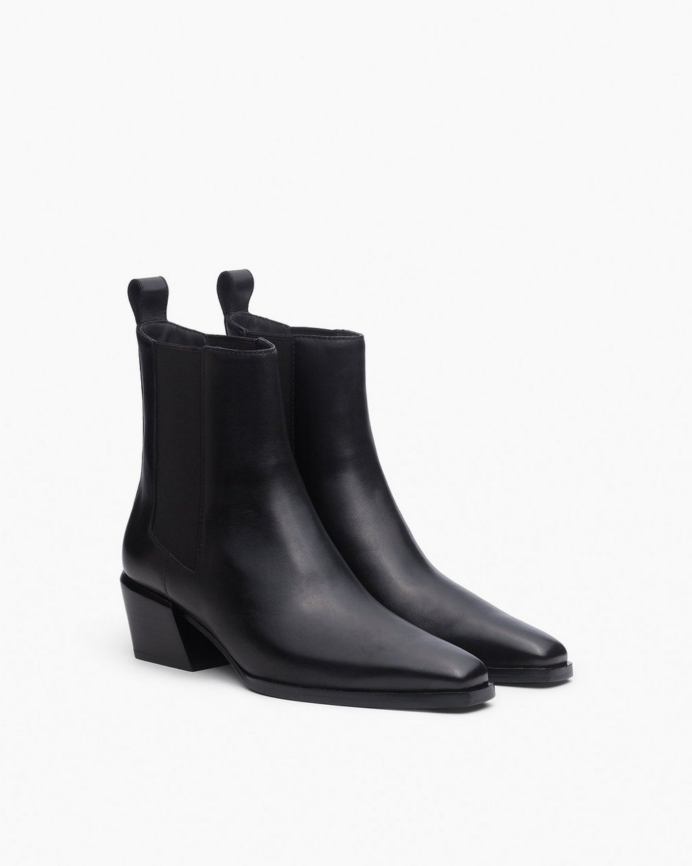 The Joni. A Chelsea boot designed to be worn with any pant leg shape from day to night. Our ankle boot is crafted in leather with a squared-off pointed toe and features elasticized gores and back pull tabs. Crafted with dual-density antimicrobial foam insoles: OrthoLite? Lazy-Hybrid? for custom-fit comfort, and OrthoLite? Recycled for stability and support.