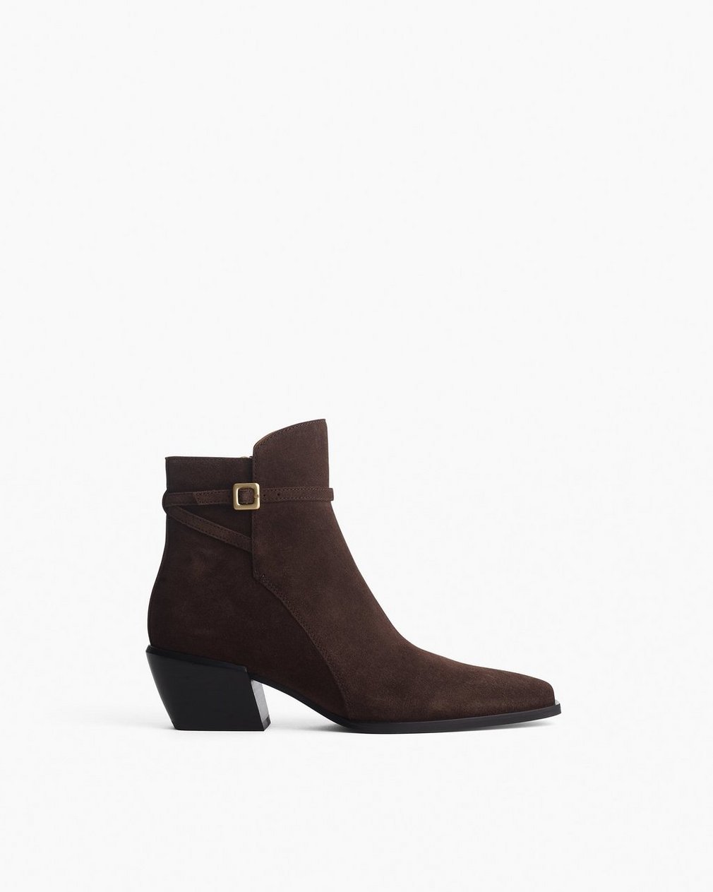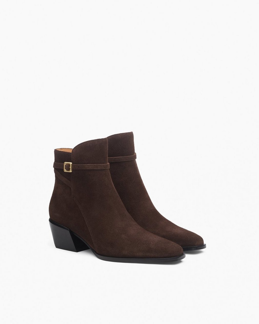 The Joni Buckle. Our iconic ankle boots, evolved for a new season with subtle buckle details. This pair is crafted from soft suede in a slim, simple shape with a square-pointed toe, side zip closure, and slanted stacked block heel. Inside, dual-layer OrthoLite? foam insoles engineered for optimal stability, support, and comfort ensure they feel just as great after all-day walks around the city as they do during neighborhood strolls.