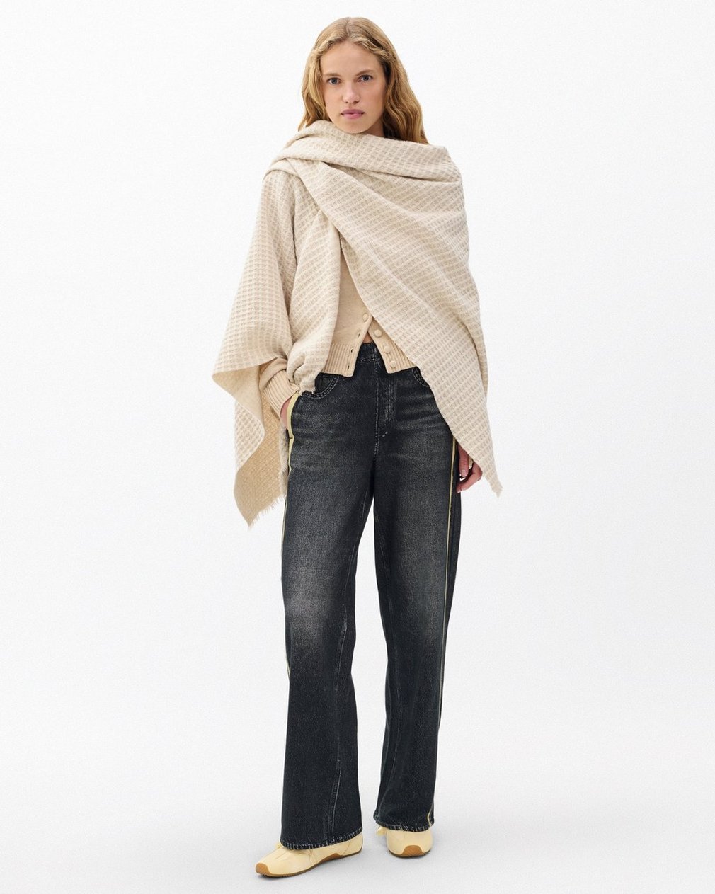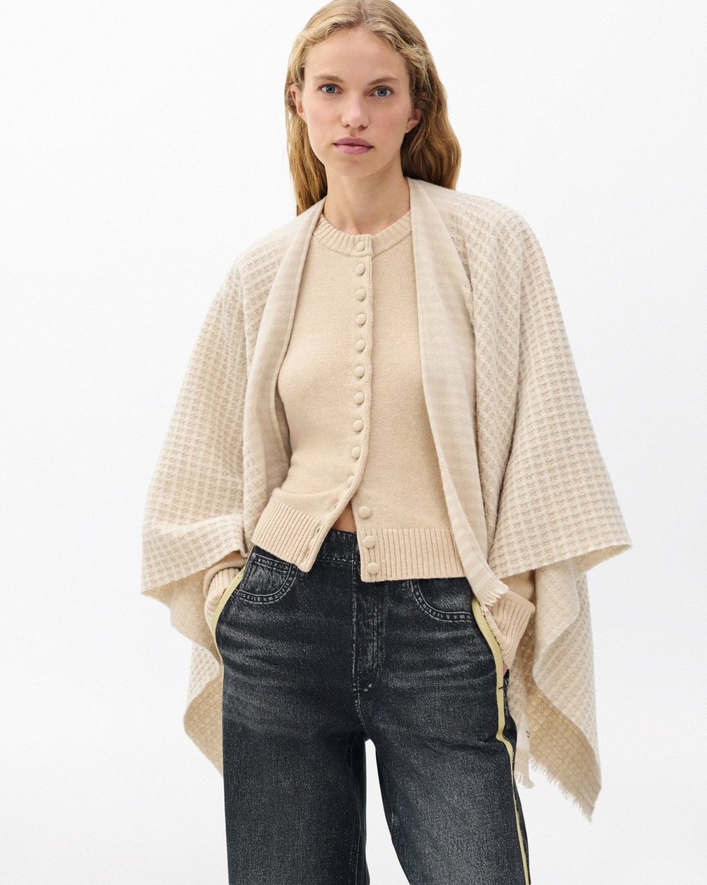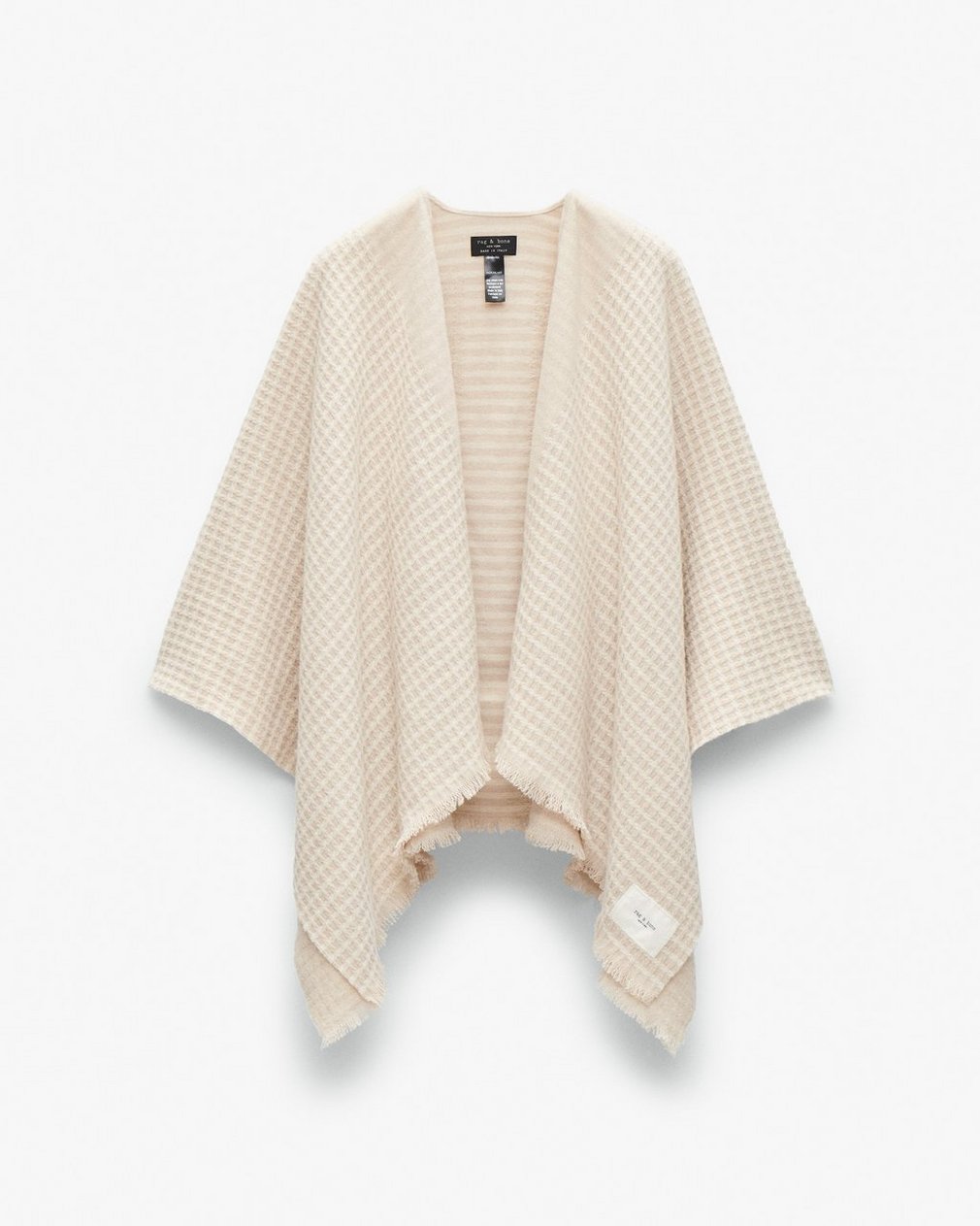 Grab it just in case. Crafted in Italy, this wool poncho features our new waffle-knit texture for a cozy, soft feel. A chic layer for any look, this two-tone style features raw edges for further detail.