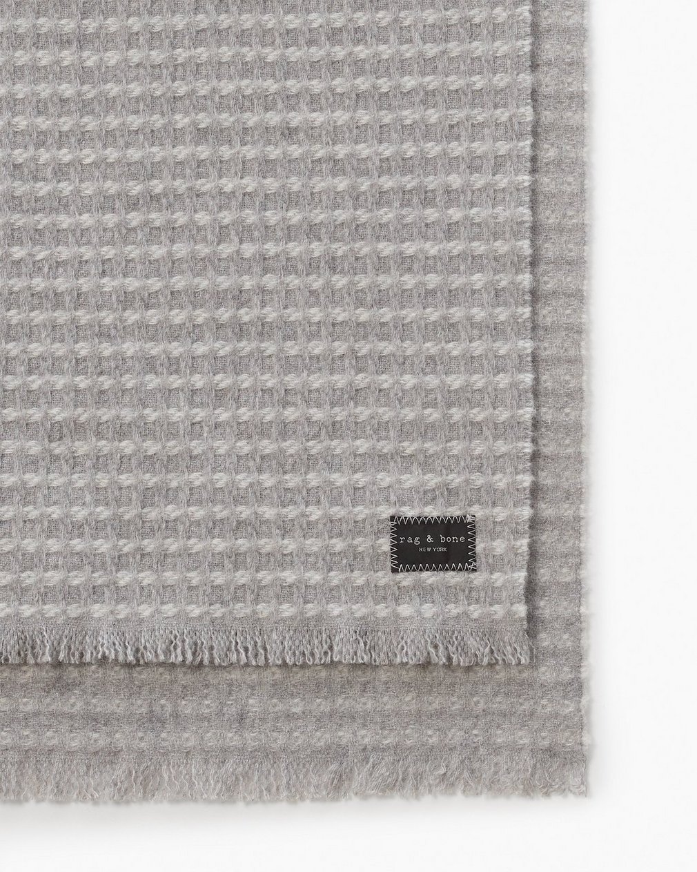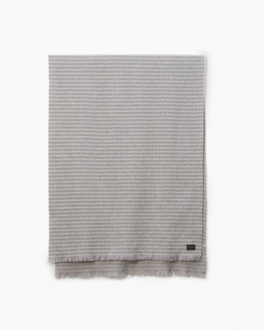 Grab it just in case. Crafted in Italy, this wool scarf features our new waffle-knit texture for a cozy, soft feel. A chic layer for any look, this two-tone style features raw edges for further detail. Wrap it your way: this extra wide scarf can be just as easily thrown over your shoulders as your your neck.