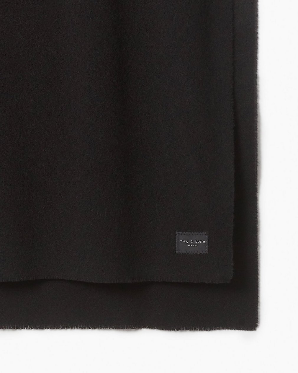 The Joni Scarf. Crafted in Italy with recycled wool with a raw edge, this classic scarf is cut extra wide making it the perfect cold-weather accessory.
