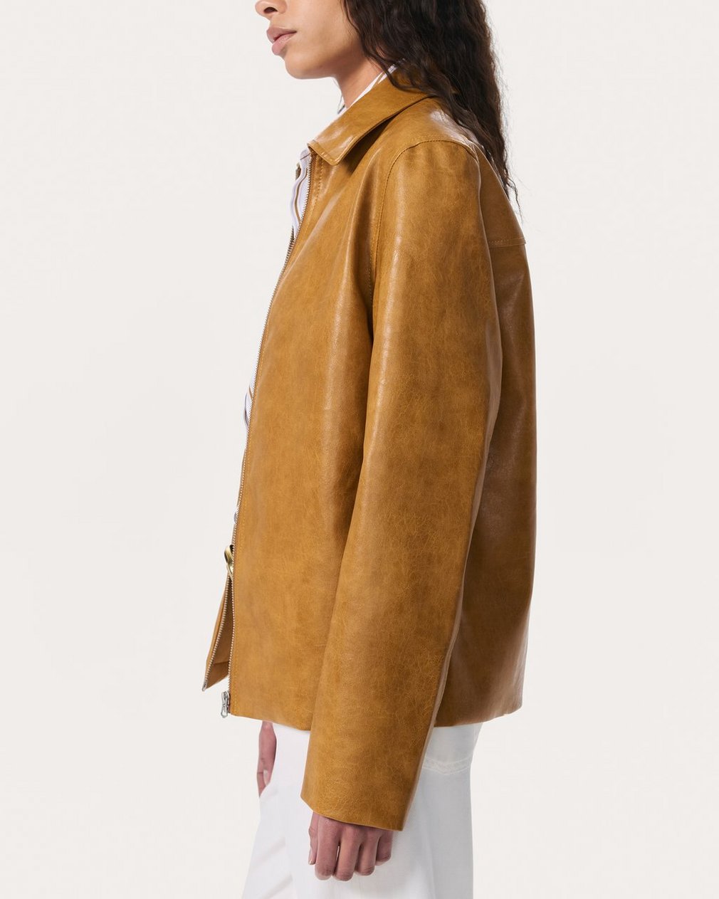 A carefree jacket with character. Nodding to vintage styles, this understated layer is crafted from weighty faux leather that looks subtly worn in, but feels super soft. The silky lining ensures it slips on and off with ease. Pair with shorts for summer or denim for any season.