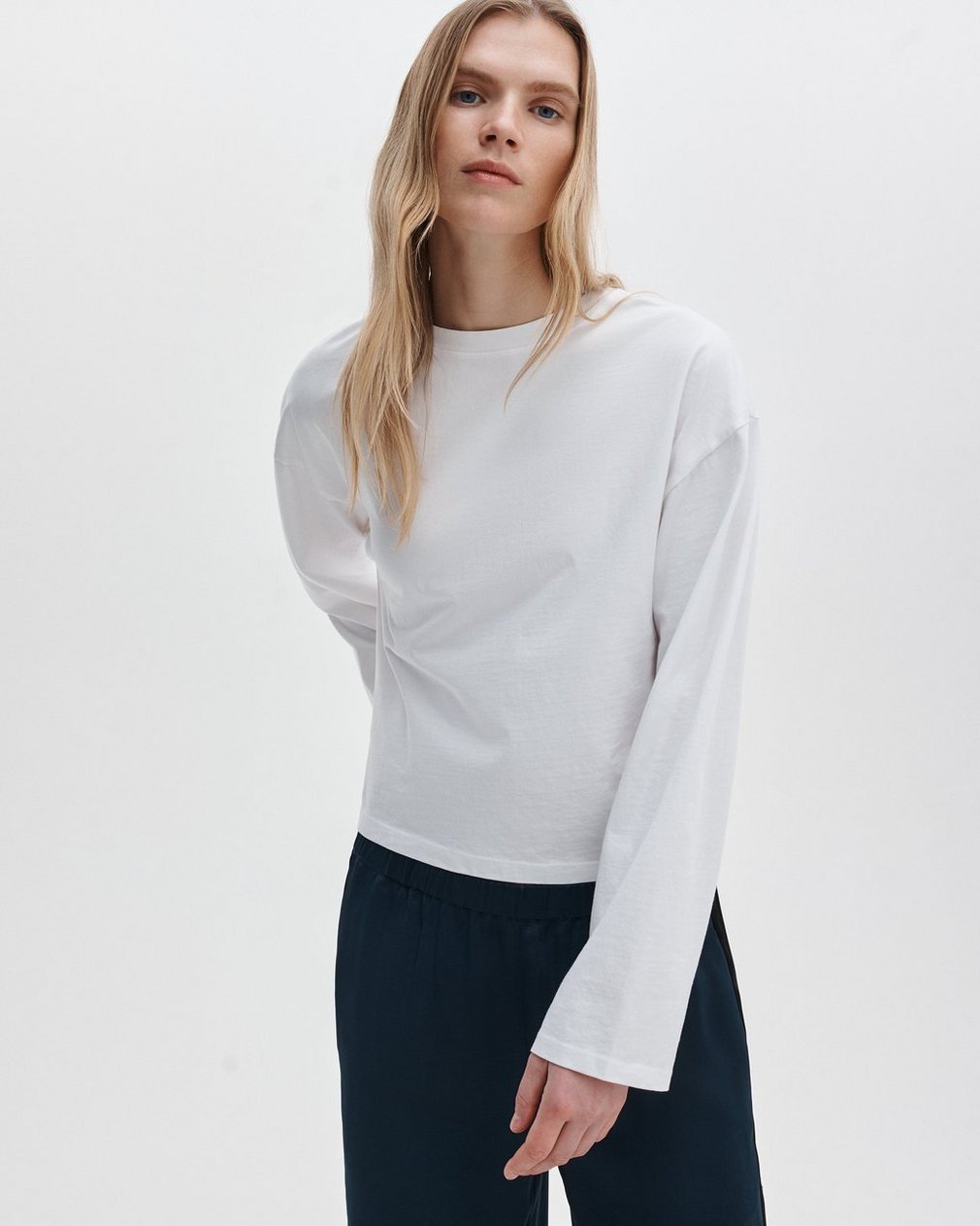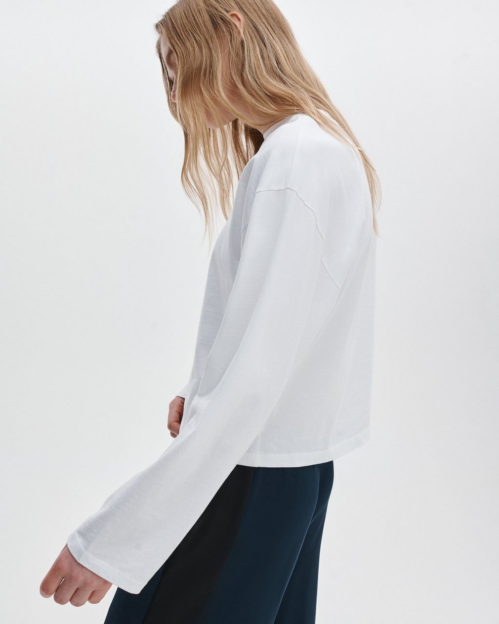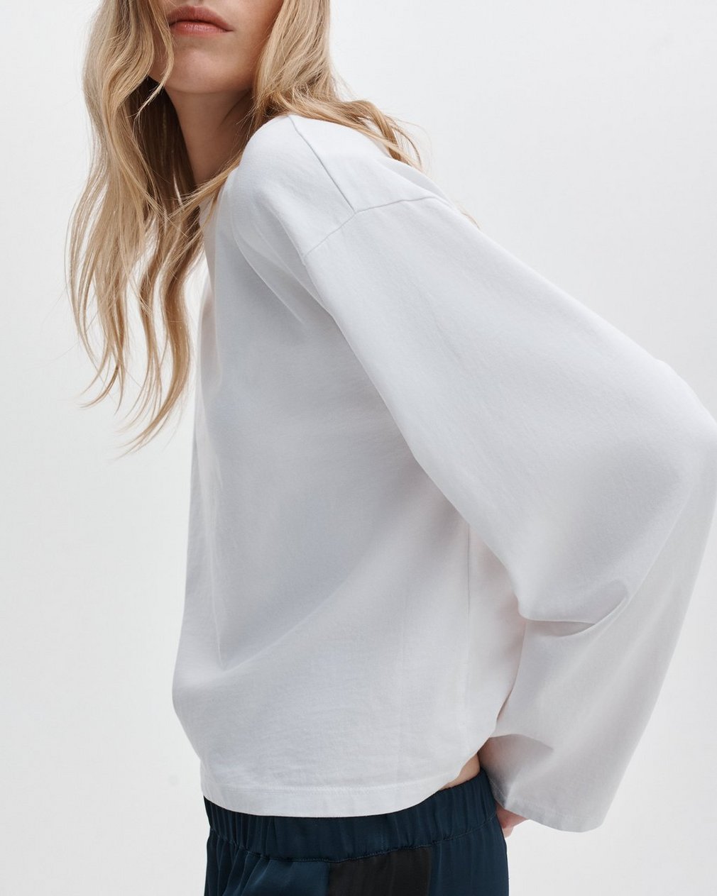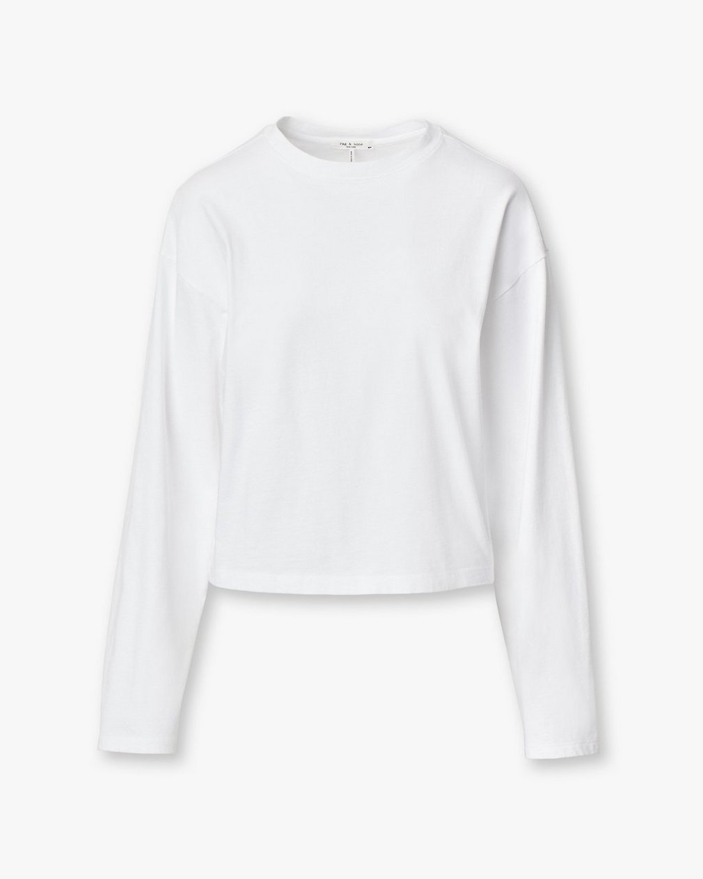 Everyday essential. This long-sleeve T-shirt is cut for a relaxed fit from soft Peruvian cotton. Pair yours with leather pants for contrast, or dress it down with your favorite denim.