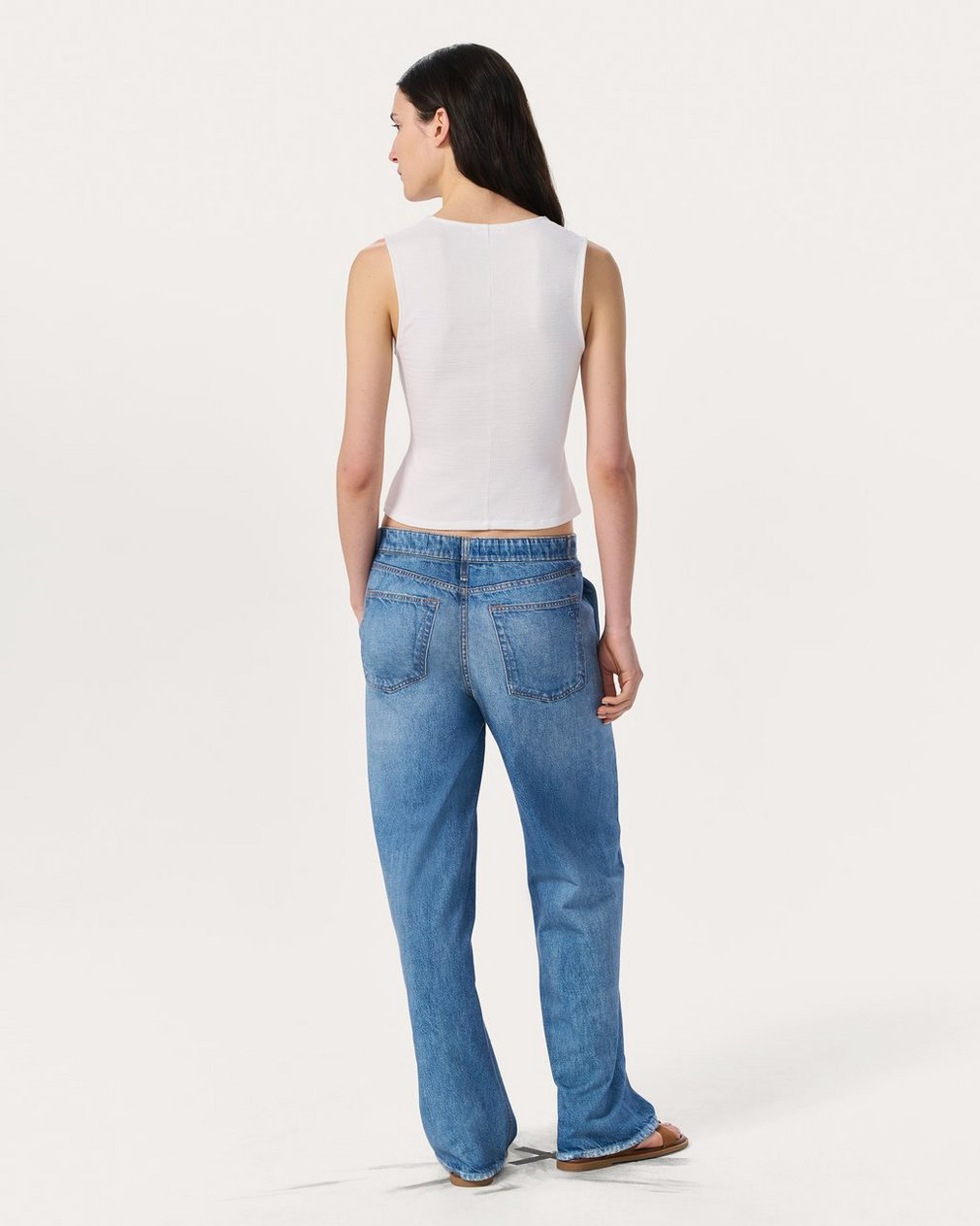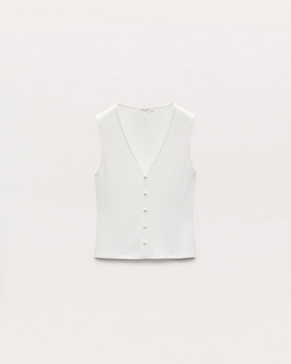 The polish of a vest meets the ease of a tank. This slim-fit top is knit from two different types of lightweight, super-soft stretch yarn for a sleek yet comfortable look wherever you wear it. It fastens up the front with tonal covered buttons.