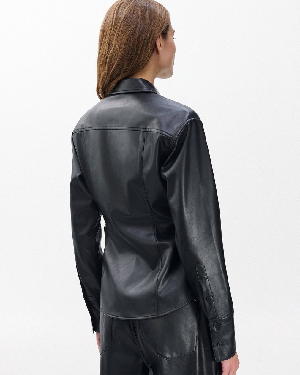 Leah Faux Leather Shirt – Black