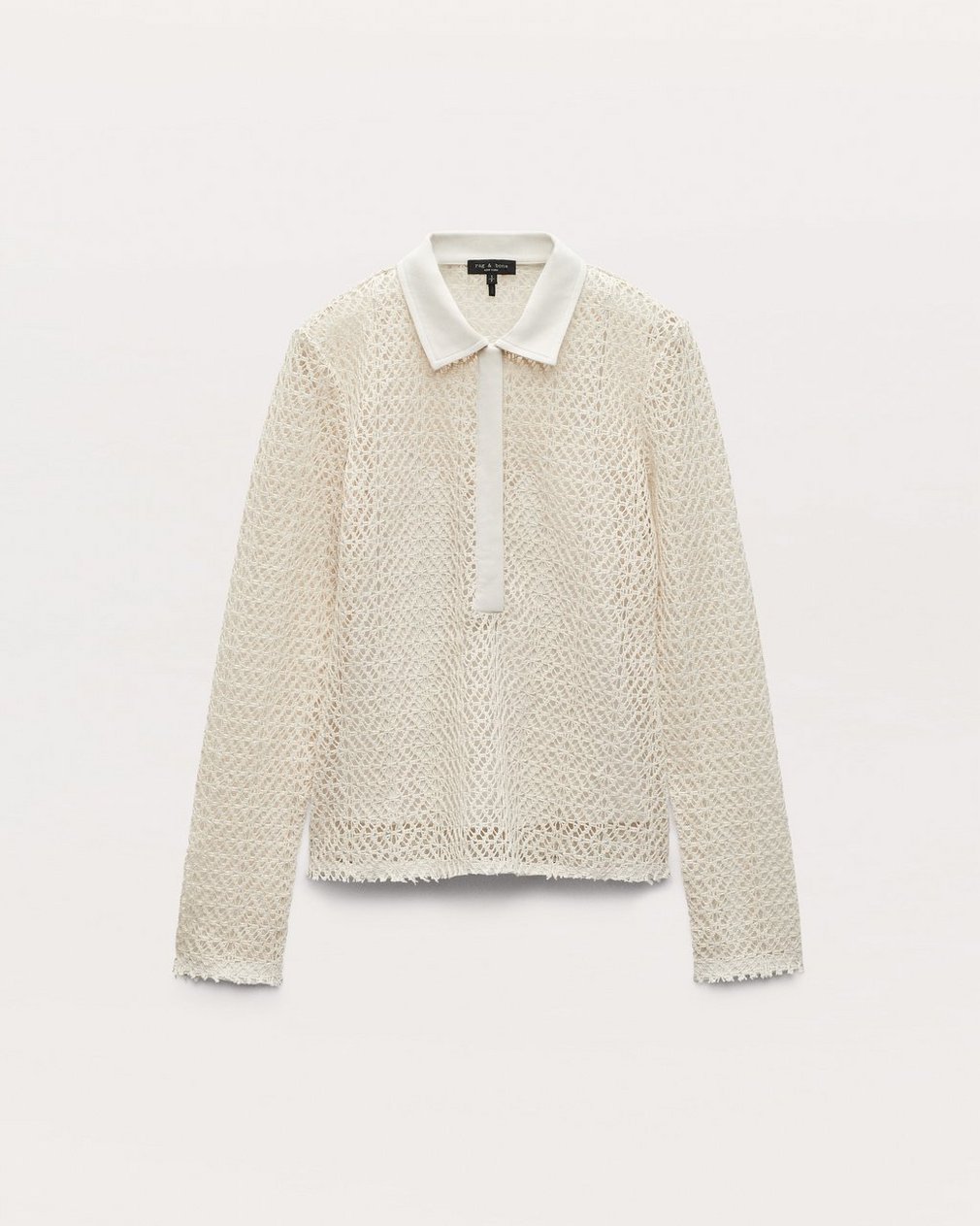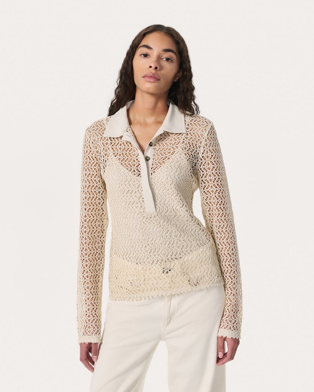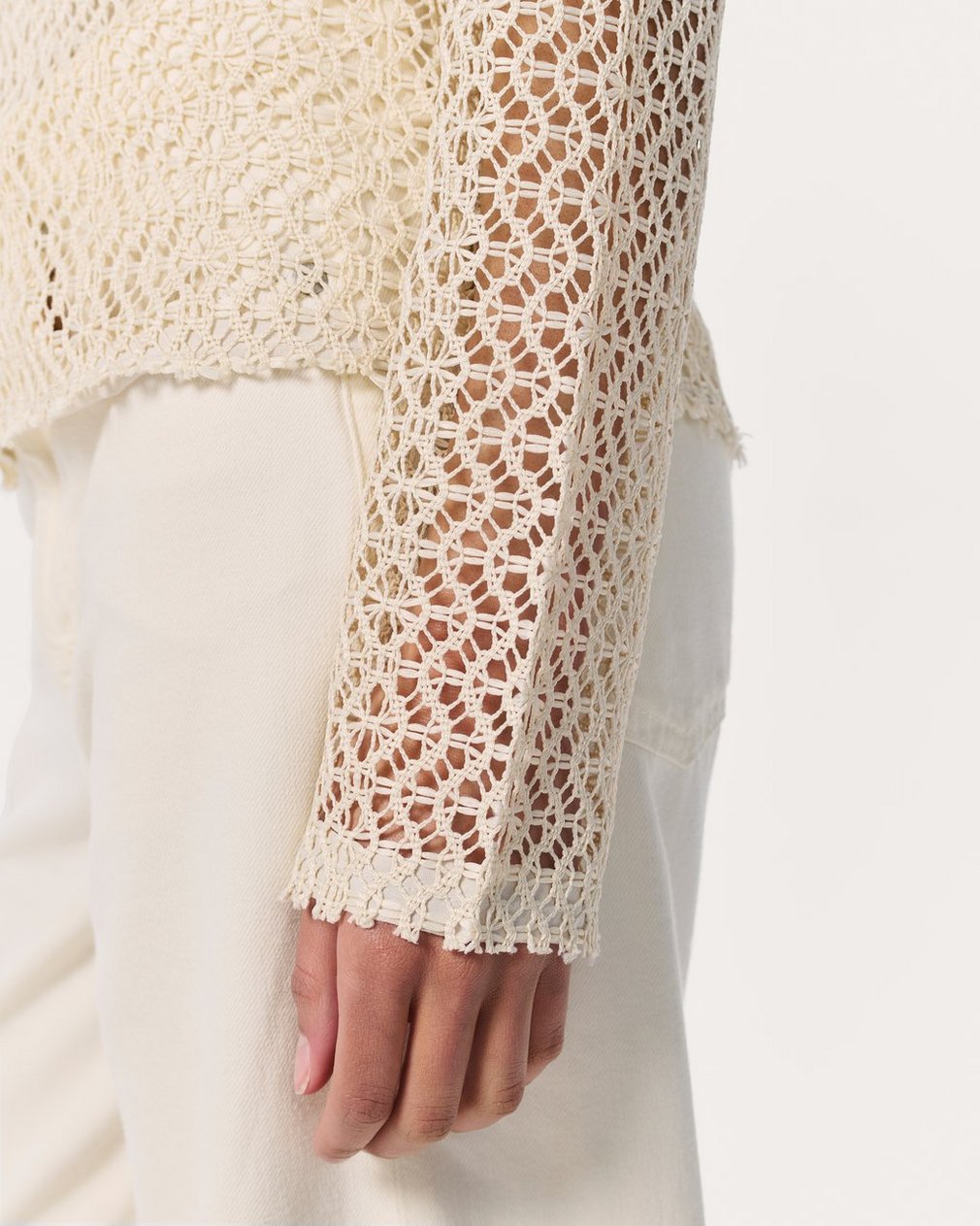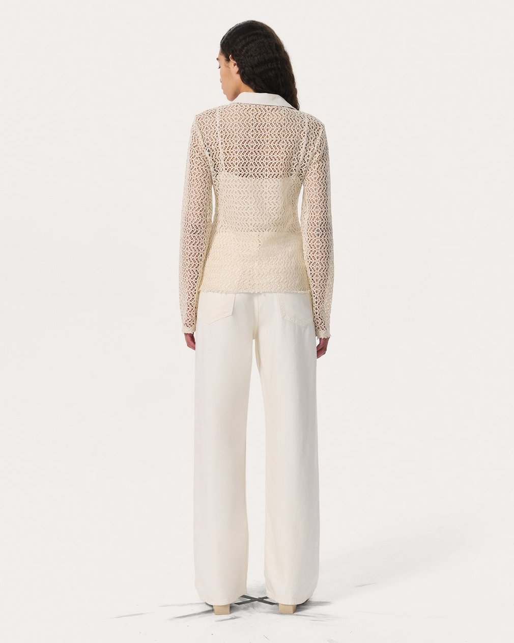 A polished long-sleeve polo. Reimagined for the season entirely in airy open-knit mesh with an intricate, crochet-like design. It’s finished with hidden buttons and a silky-soft slip lining. Wear with ultra-light jeans or double-down on its standout summer texture by pairing with the matching pants.