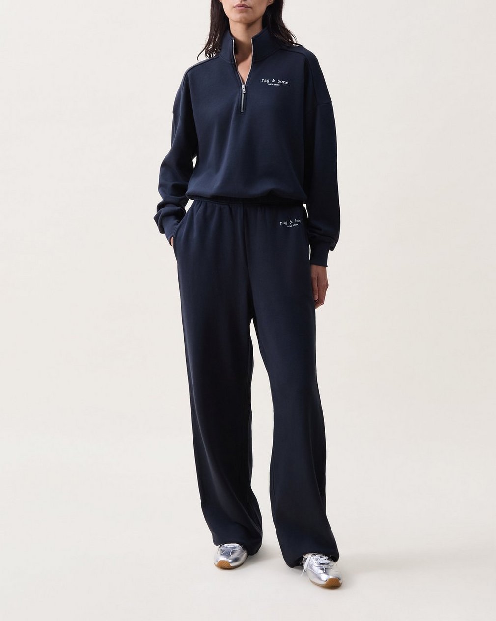 Back to the city, this time in rag & bone sweatsuits. These sweatpants are a highly versatile, flattering, and modern take on a classic. Crafted from soft cotton with a slightly tapered leg and a hidden drawstring waistband for ease of wear wherever. Pair it with the matching sweatshirt or half-zip to complete the effortless look.