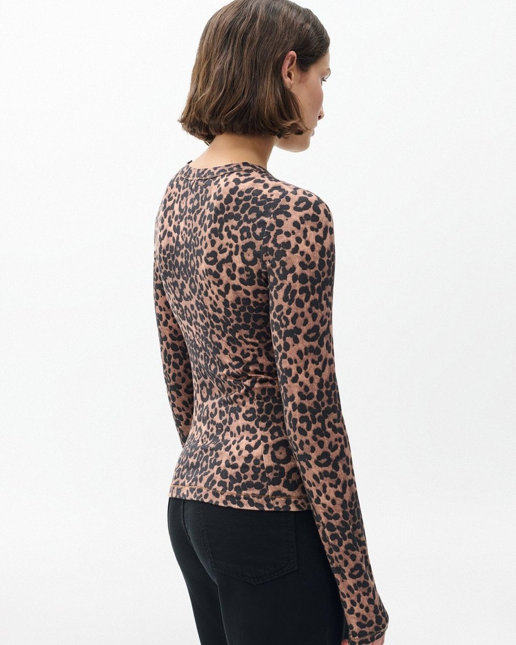 Meet our leopard-print top that makes boldness easy. A fitted long-sleeve T-shirt made from our silky-soft fabric that’s cool to the touch and knit with a bit of stretch. V-stitch seam detailing at the back completes its signature look. Perfect for wearing on its own, or layering with anything.