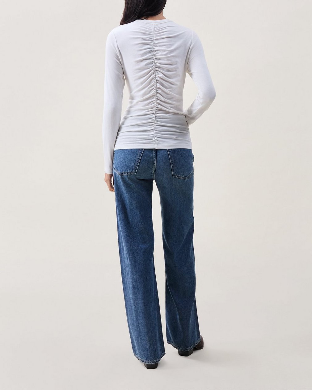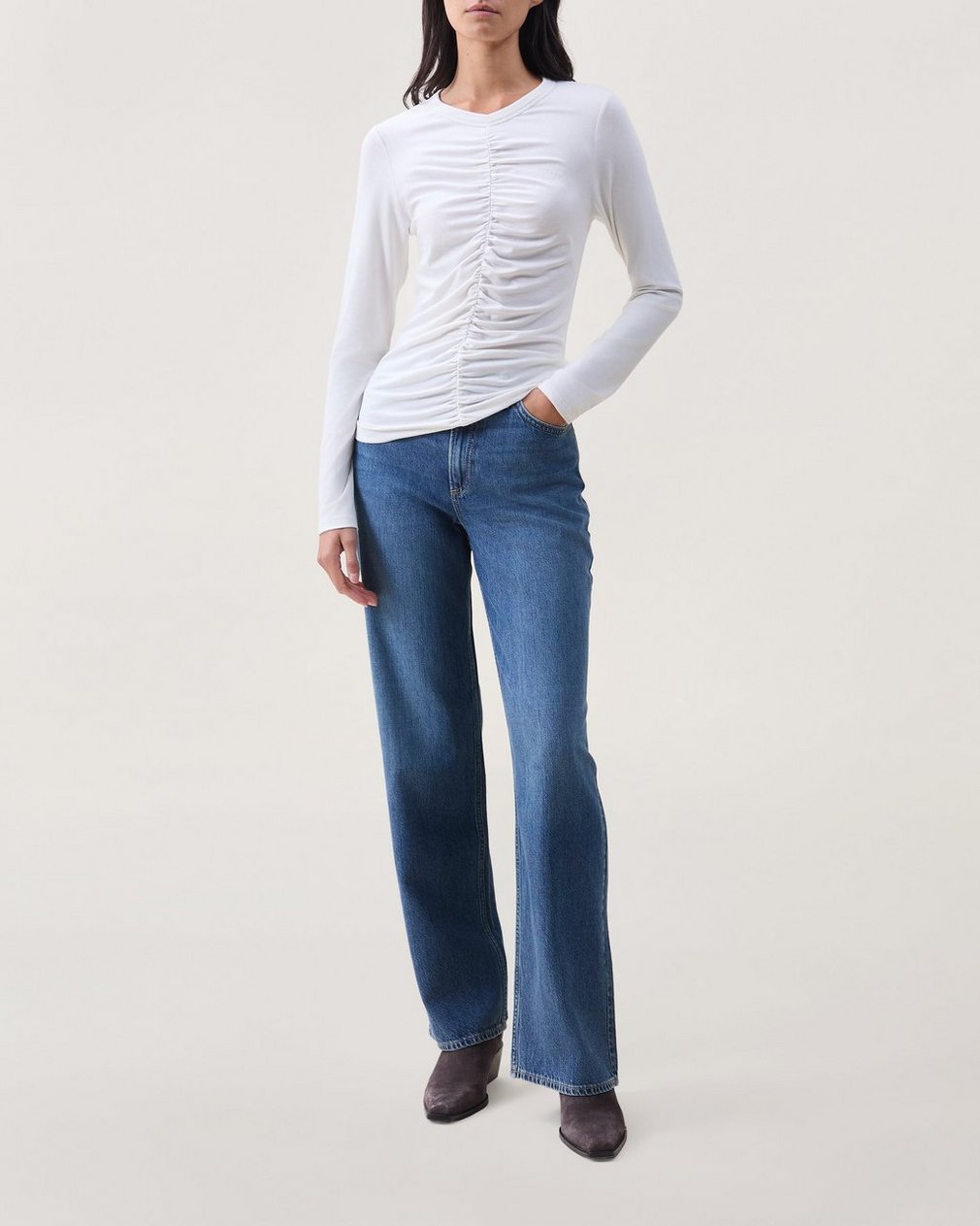 Refined style. This long sleeve top features a shirred effect throughout for texture and detail. Crafted from soft stretchy jersey with a comfortable feel and a smooth, luxurious finish. Effortlessly elevated, for day to night.
