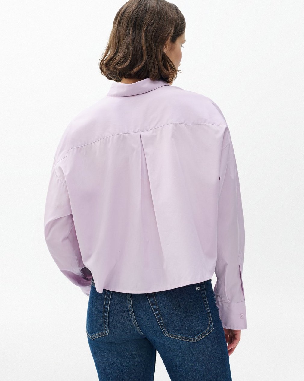 Not your basic button-up. A modern twist on your favorite button-up shirt, cut from crisp, lightweight cotton poplin with a cropped, relaxed silhouette made for now. Finished with logo embroidery at the cuffs.