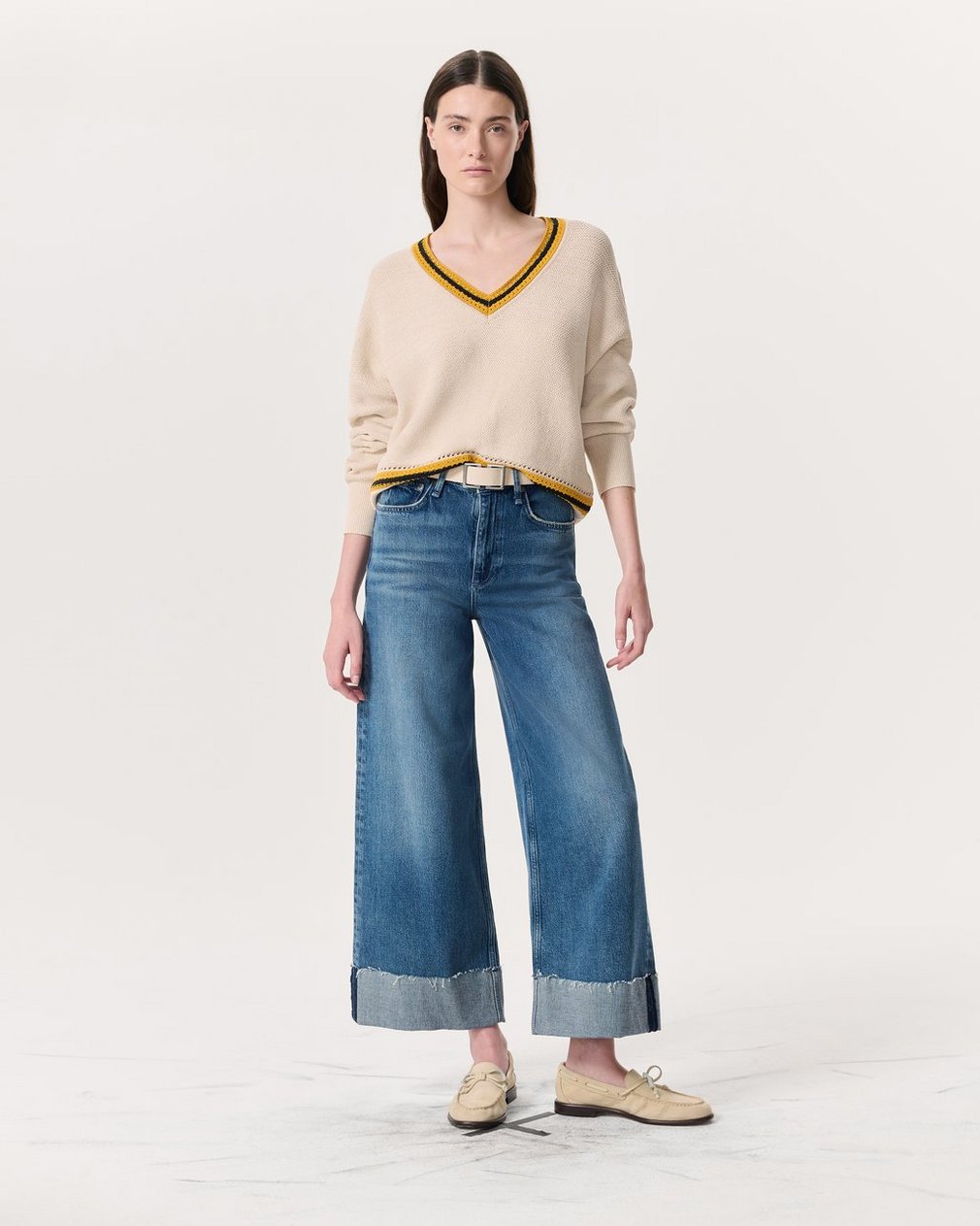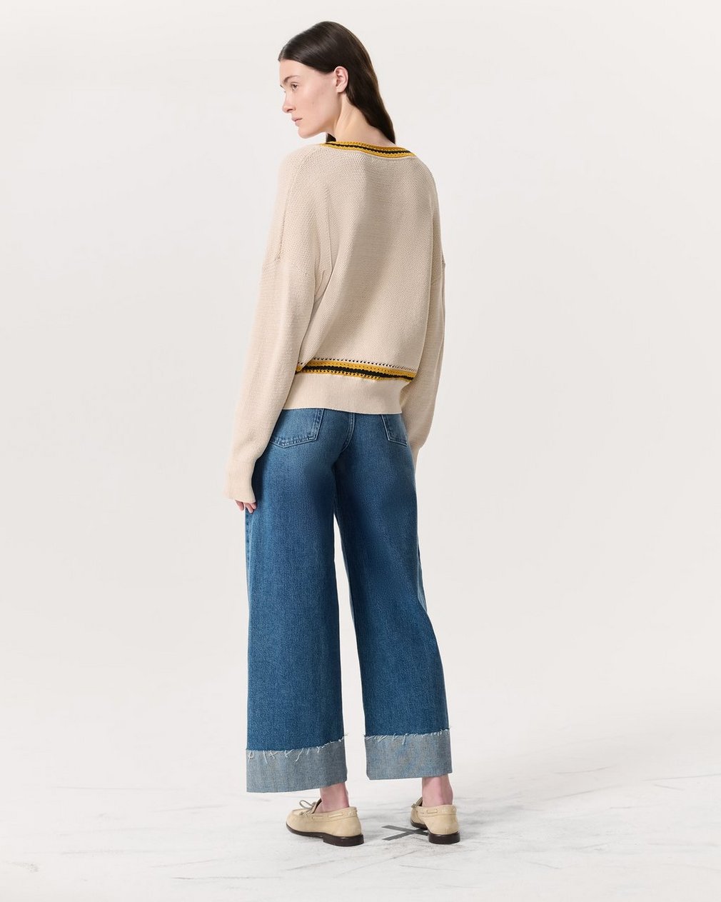 Remixing the classics. Crafted from a lightweight yarn infused with breathable cotton and viscose, our oversized take on the iconic cricket sweater is all about rich texture, from its open-knit body to striped crochet trims.