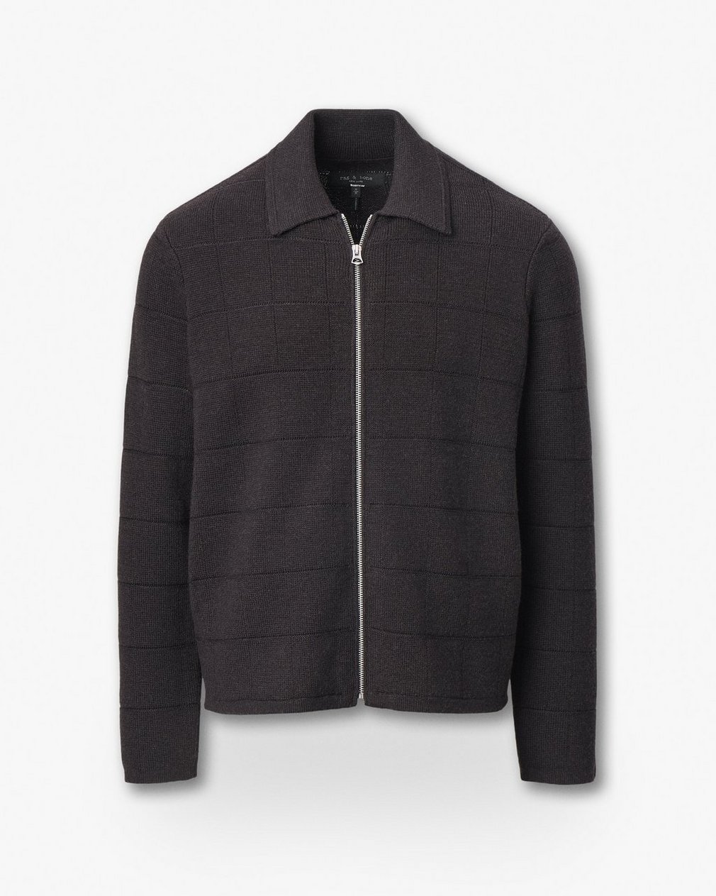 More than meets the eye. Crafted from soft wool with a windowpane pattern, this full-zip sweater pairs subtle texture with visual intrigue. Suited for everywhere, from your desk to dinner plans.