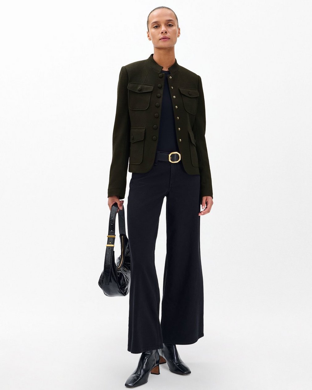 A new rag & bone favorite. Sister to our iconic Slade blazer, Mercer is our take on a four-pocket military jacket. Crafted from Japanese-milled wool with a fitted, structured shape and fabric-covered snaps. Fasten it up, or don’t. You’re in charge.