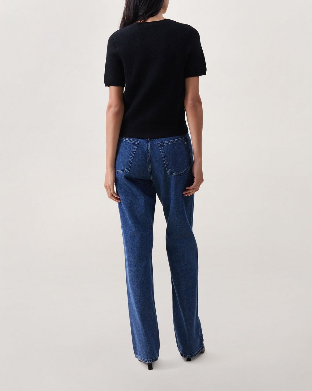 Inspired by the Dina. A fitted, short-sleeve cardigan sweater, knit with a ribbed stitched from soft yarns spun with wool and comfortable stretch. Our signature V-seam detailing at the back completes its look.
