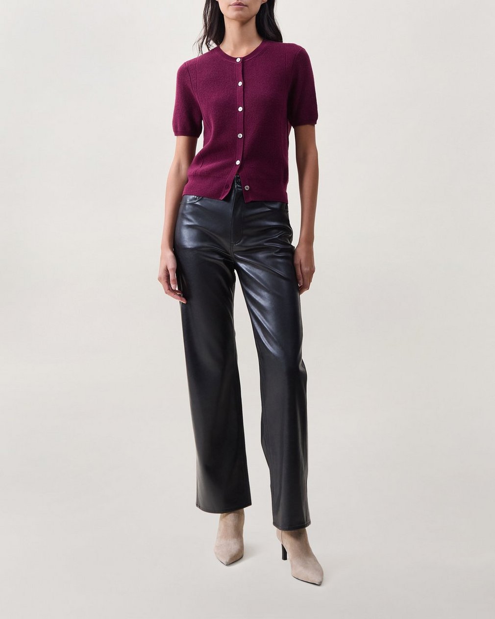 Michal Short-Sleeve Cardigan – Dark Berry