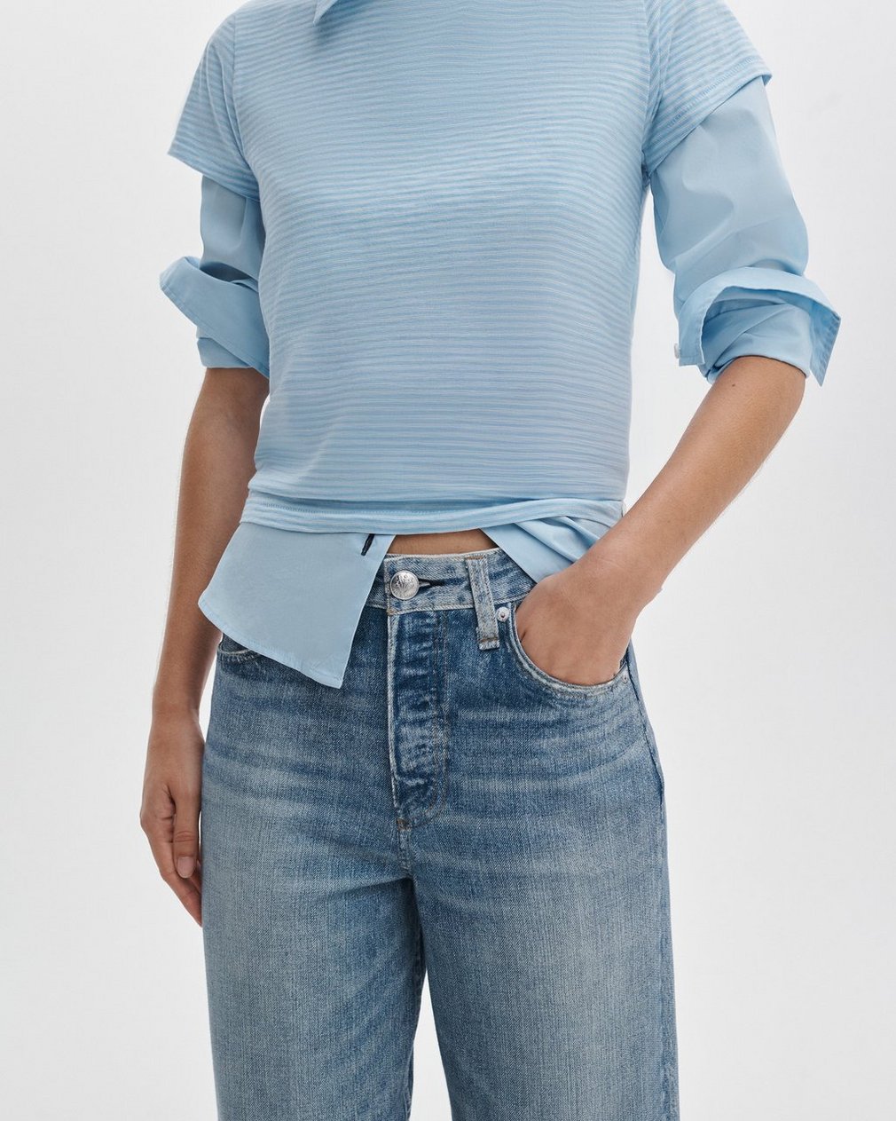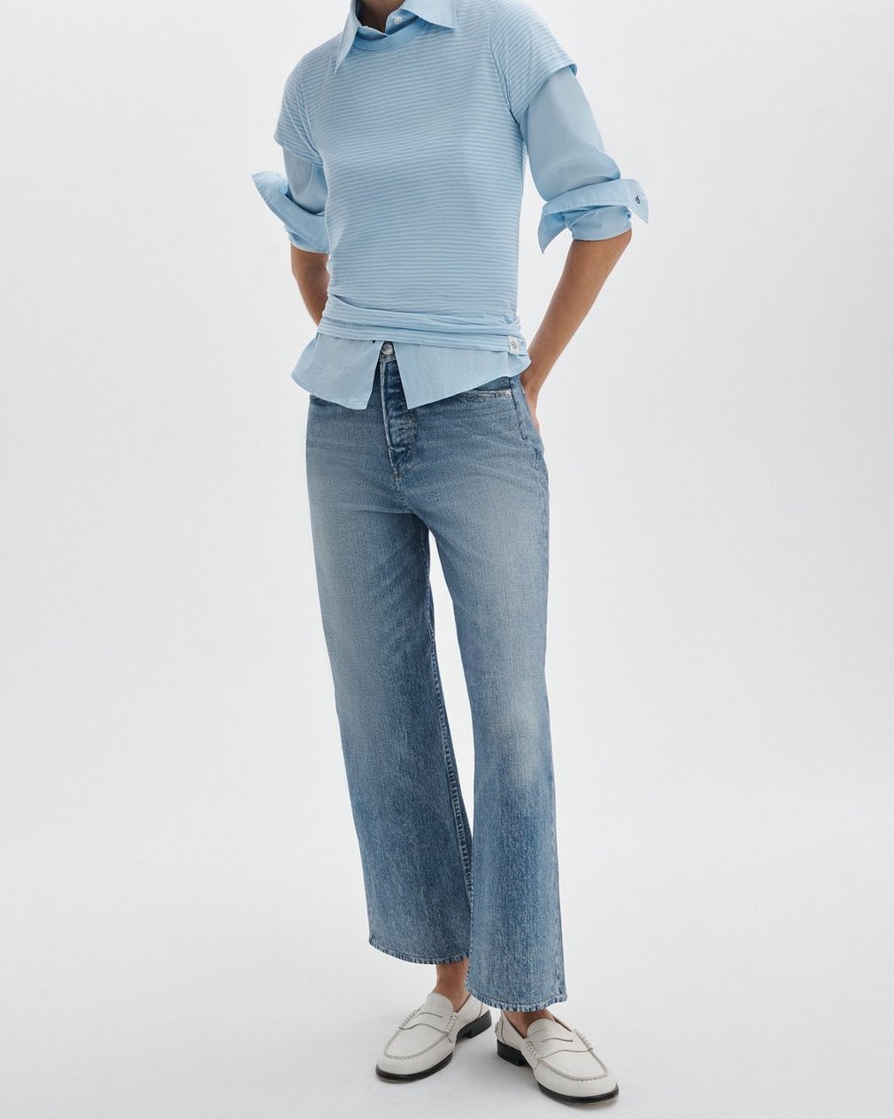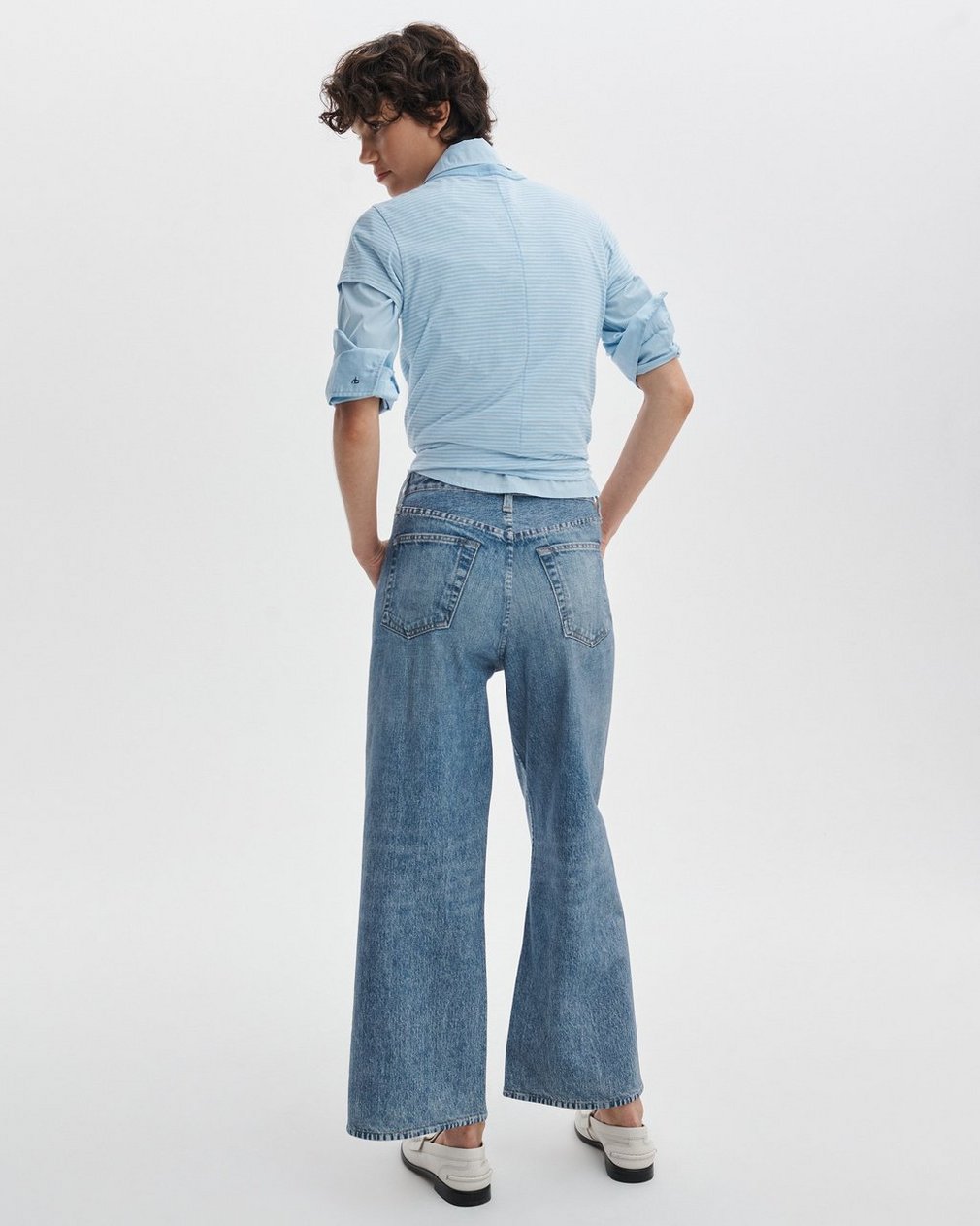 Miramar, our revolutionary printing technique, makes any material look like denim. Offered for the first time in our beloved Andi silhouette, these wide-leg pants are cut and sewn from cotton terry fabric that’s ultra-soft on the inside and printed on the outside to look like your favorite jeans. Featuring functional belt loops, front scoop pockets, a zip fly, and a button closure, the high-rise, ankle-length style further achieves its comfortable fit and feel with the back pockets and other denim details digitally printed on the fabric.