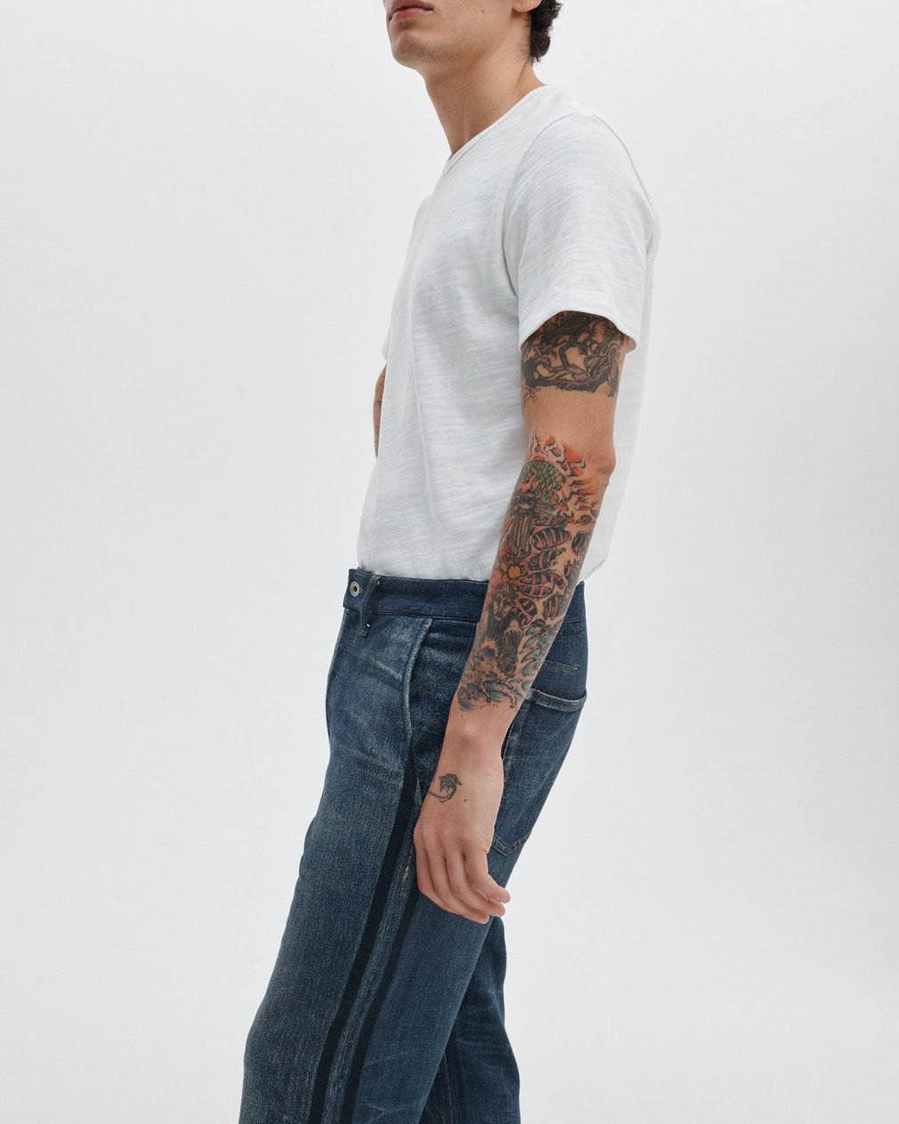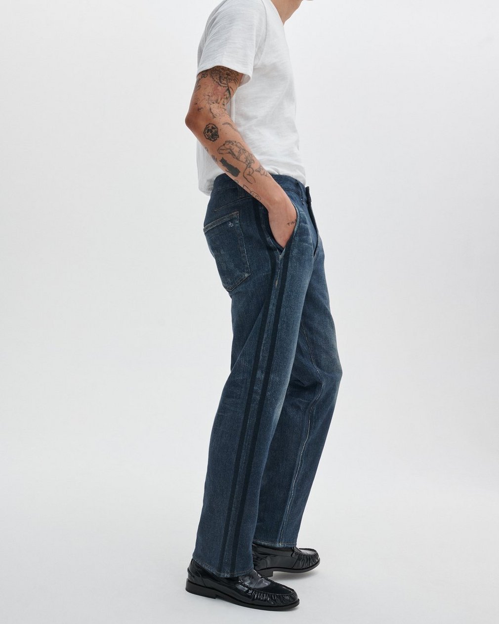Miramar, our revolutionary printing technique, makes any material look like denim. These straught-leg track pants are cut and sewn from cotton terry cloth that’s ultra-soft on the inside and printed on the outside to look like your favorite jeans. Featuring functional slant pockets, a zip fly, and a button closure, the mid-rise style further achieves its comfortable fit and feel with its sporty side stripes and denim details digitally printed on the fabric.