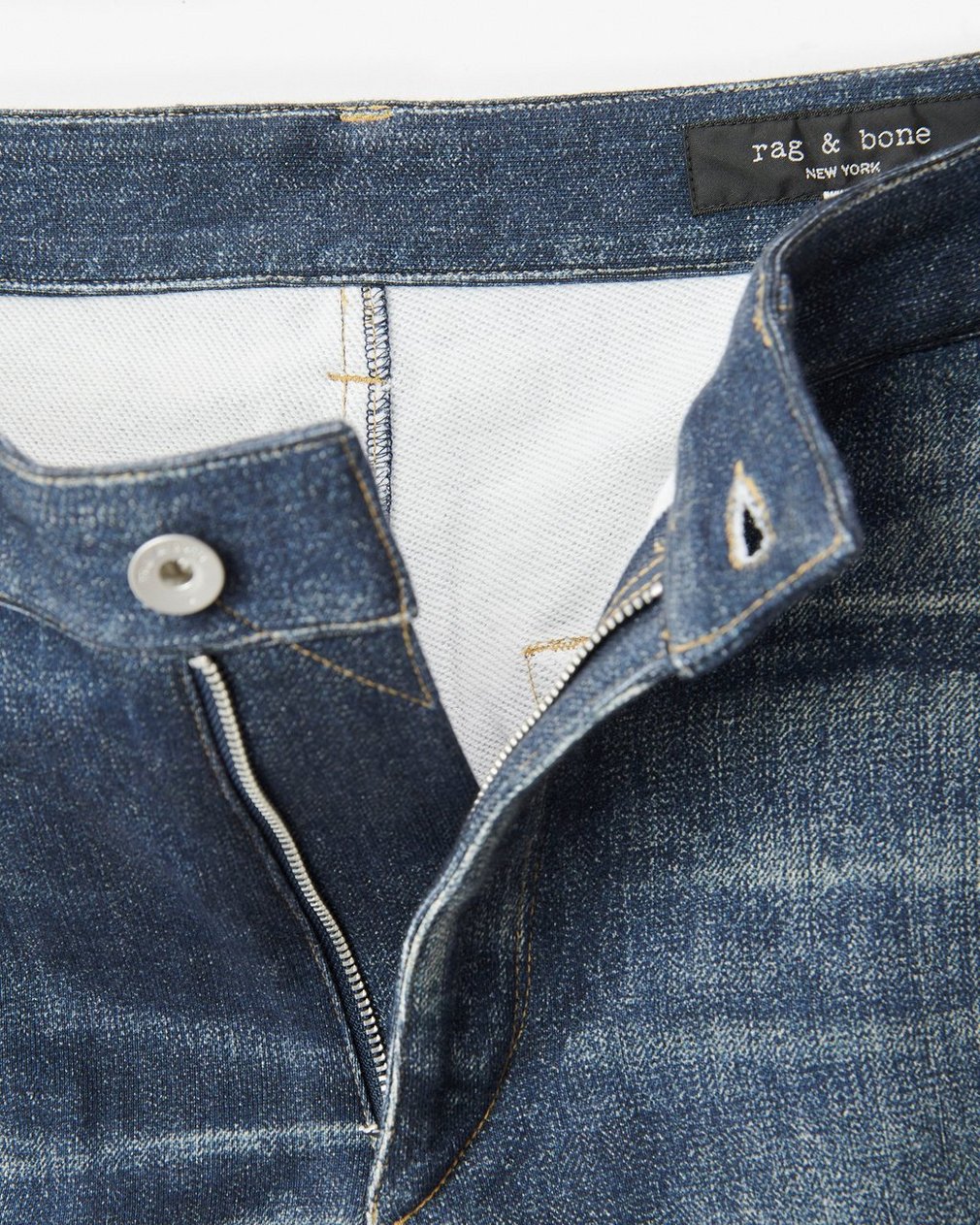 ? 100% cotton? Miramar Terry, a soft cotton fabric with a trompe l’oeil denim print? Zip fly with button closure? Front slash pockets and two back welt pockets? Machine wash cold inside out, lay flat to dry? Imported