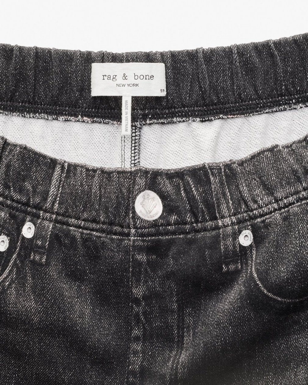 Miramar, our revolutionary printing technique, makes any material look like denim. These jogger pants are cut and sewn from cotton terry cloth that’s ultra-soft on the inside and printed on the outside to look like your favorite jeans. Featuring a pull-on elastic waistband and side seam pockets, the slim, mid-rise style further achieves its comfortable fit and feel with the other denim details digitally printed on the fabric.