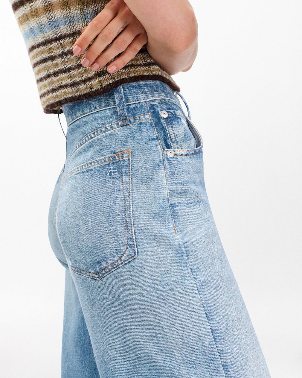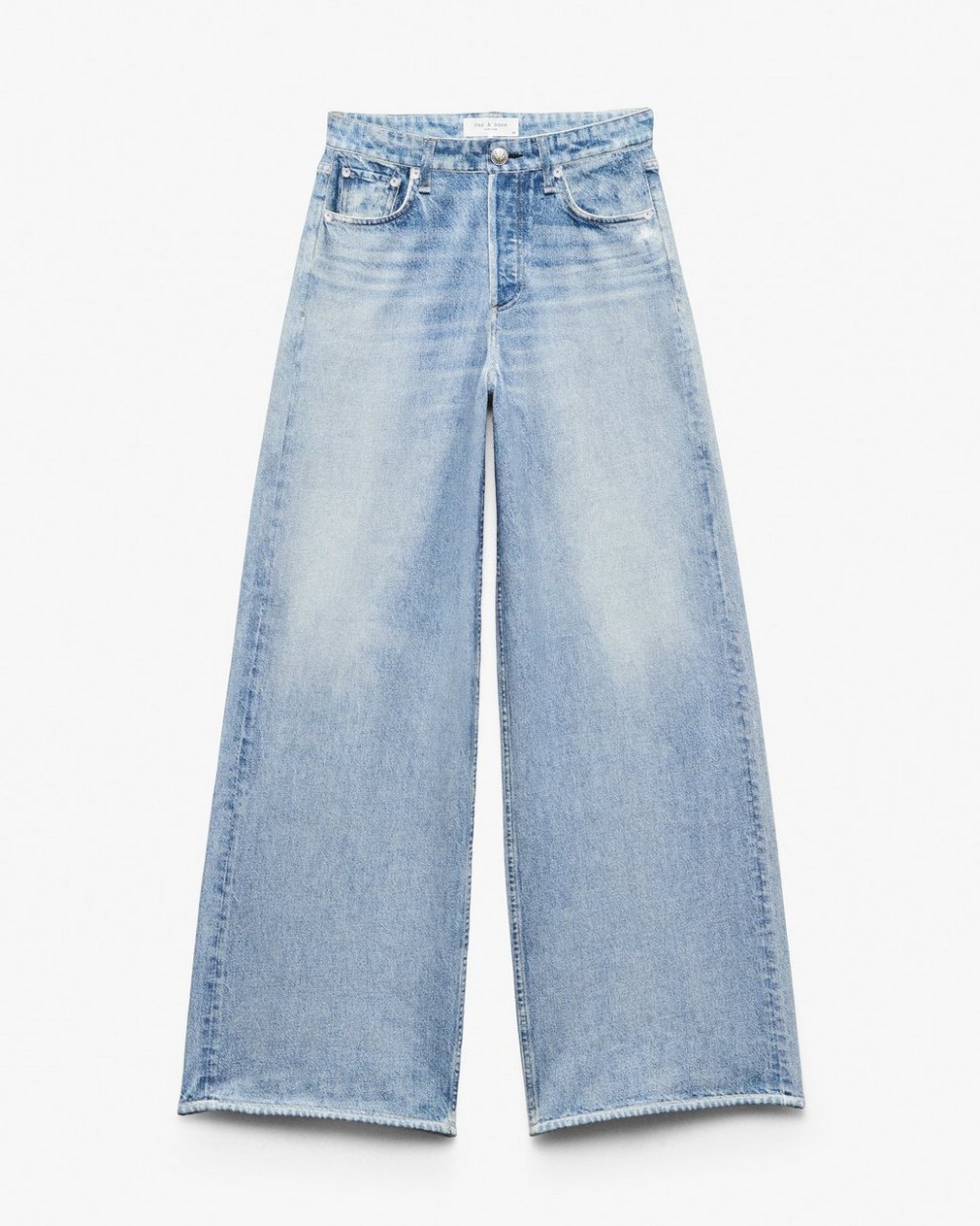 Miramar, our revolutionary printing technique, makes any material look like denim. These Sofie pants are cut and sewn from cotton terry cloth that’s ultra-soft on the inside and printed on the outside to look like your favorite jeans. Featuring super-wide, full legs with flared hems, plus functional belt loops, front scoop pockets, a zip fly, and a button closure, the high-rise style further achieves its comfortable fit and feel with the back pockets and other denim details digitally printed on the fabric.