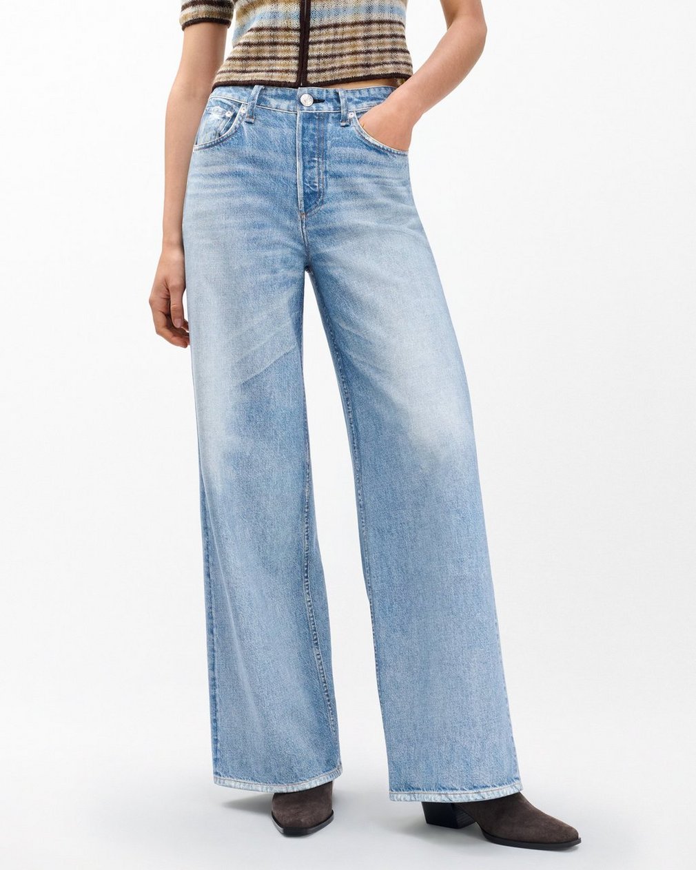 ? High-rise, full-length wide leg? Fits true to size? Size 26: 12.25″ front rise, 34″ inseam, 25.5″ leg opening