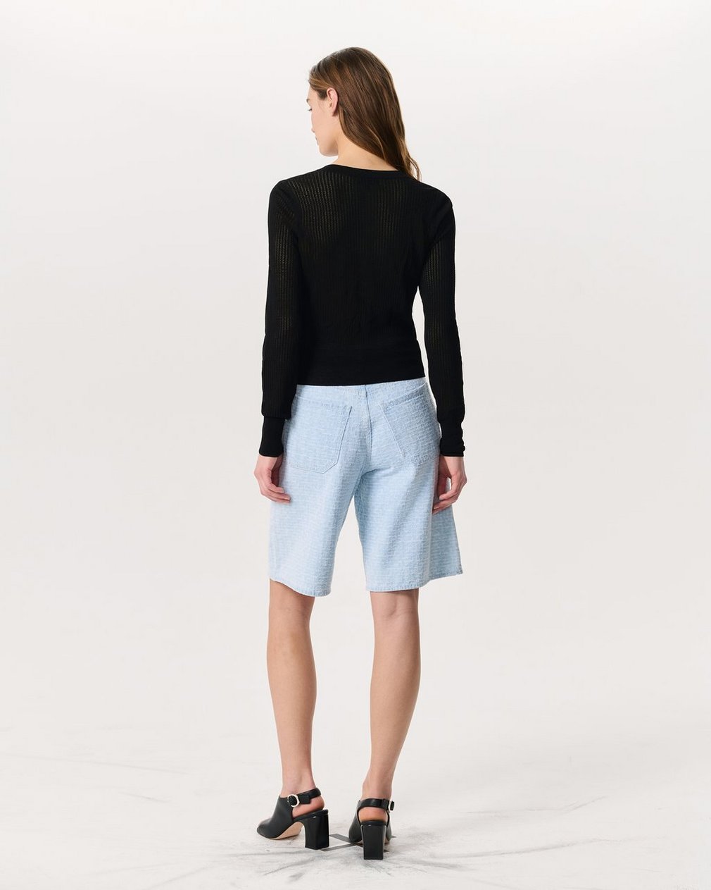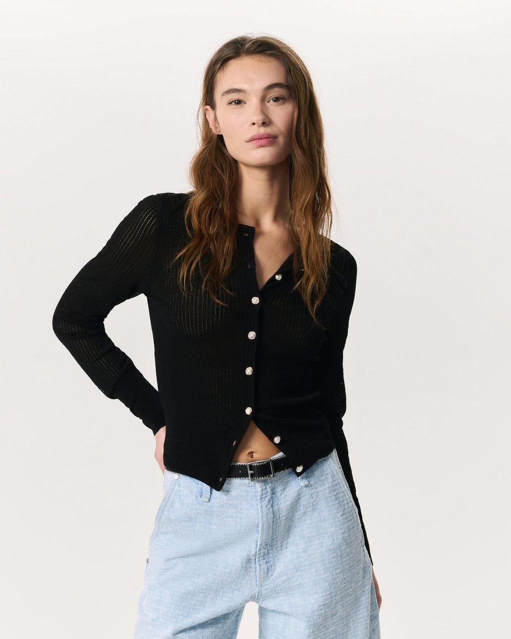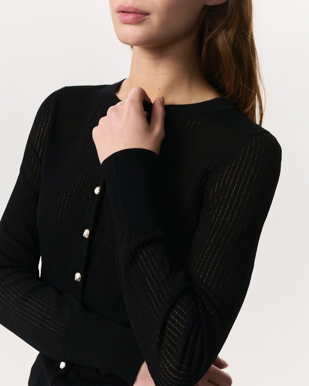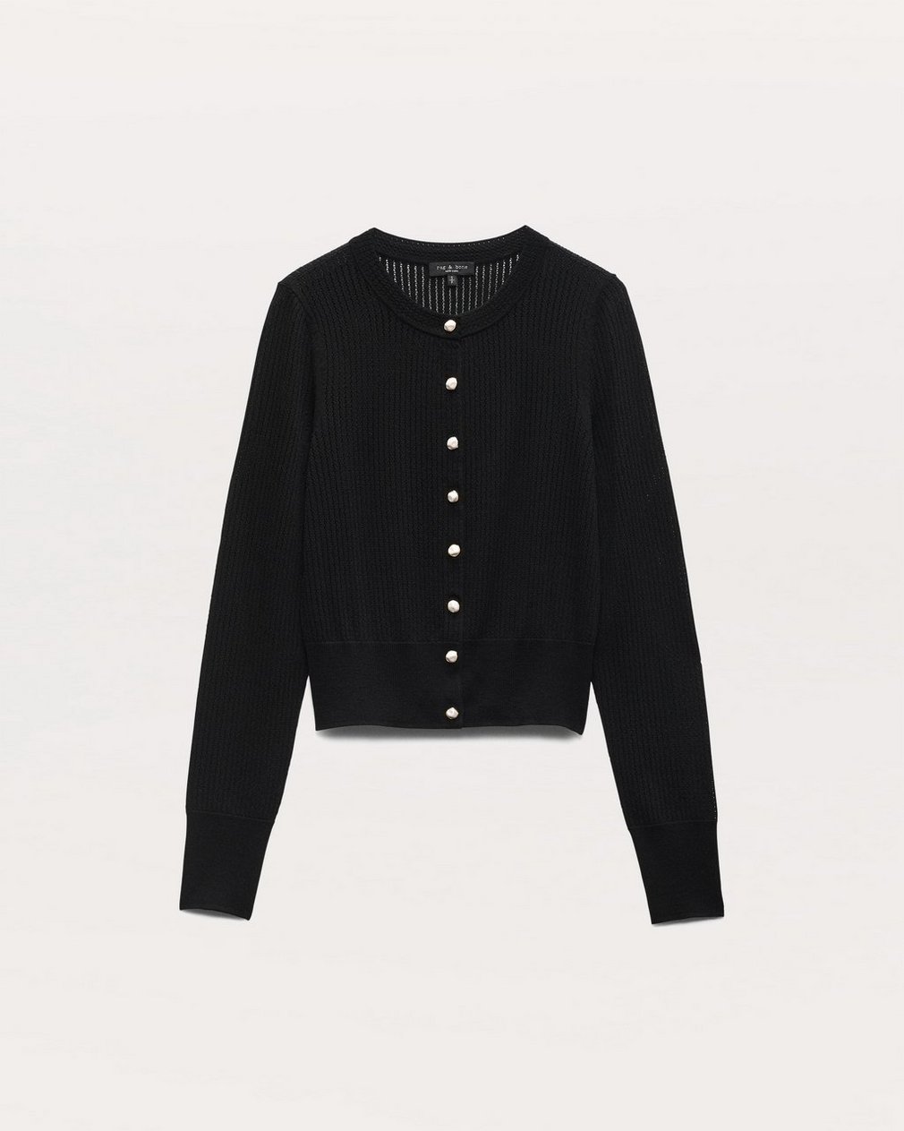 The perfect layer for any season or setting. Light and breathable, this cardigan sweater is crafted for an easy, classic fit with a slightly open-knit texture, making it ideal for year-round wear. Sculptural faux-pearl buttons provide an elevated finishing touch.
