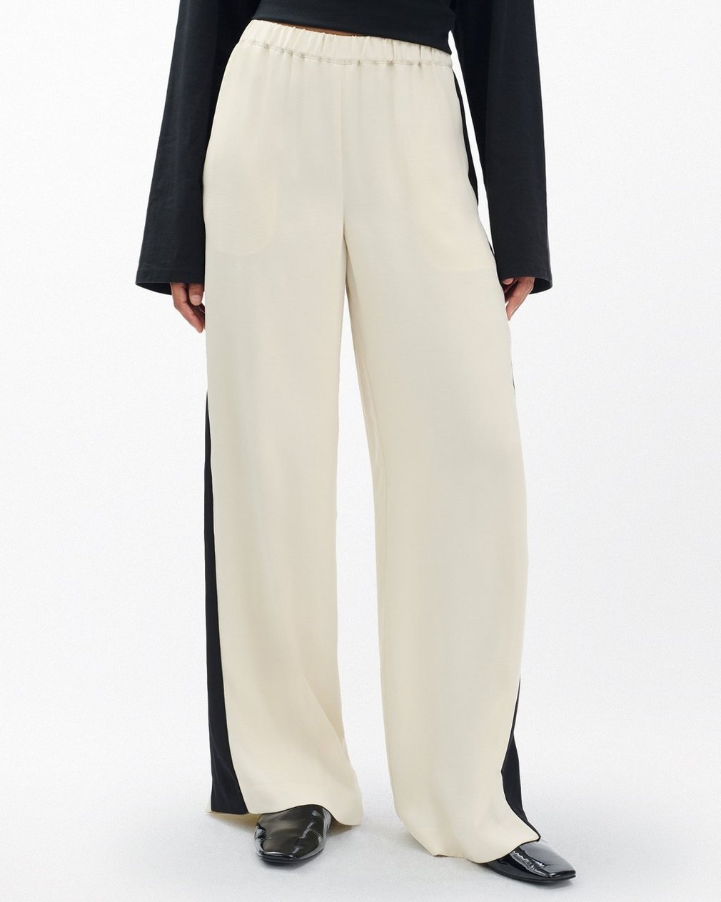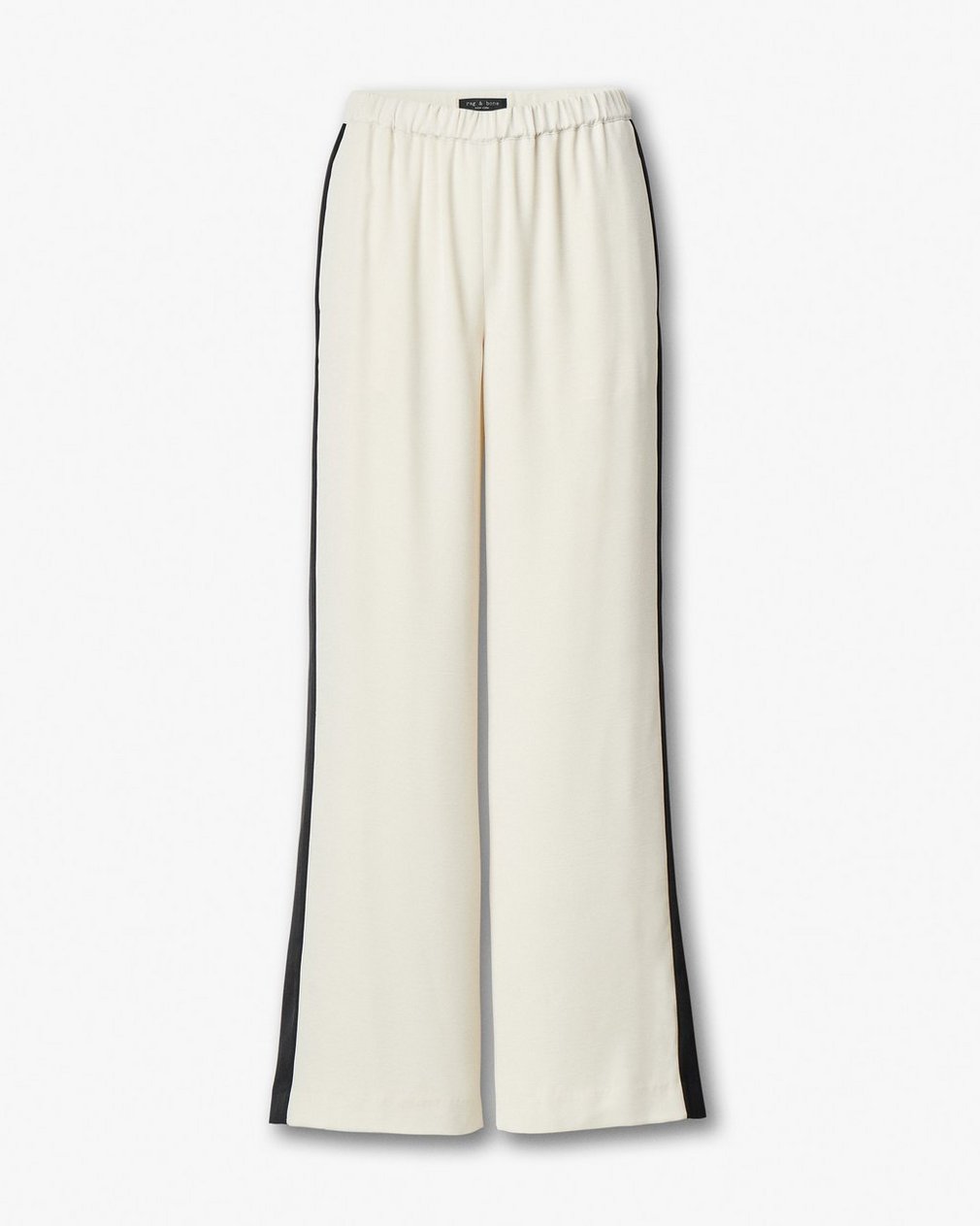 Everyday ease. These pants are cut for a low-rise, relaxed fit. Fully lined with an elastic waistband, they’re ultra-comfortable and feature contrast side stripes for a sporty look. Pair yours with a luxurious polo sweater for the ultimate airport look.
