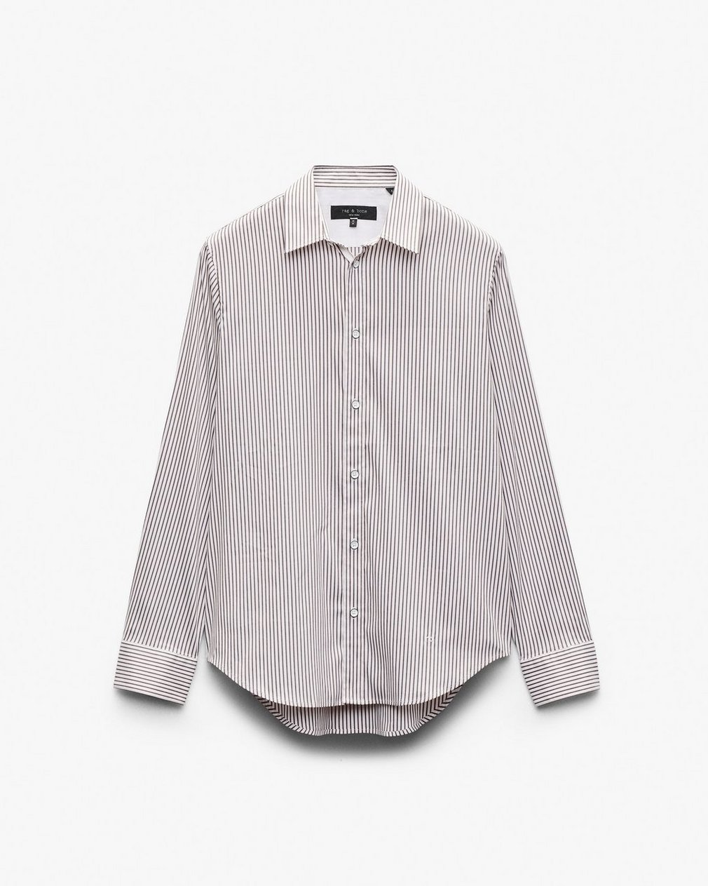 ? 81% cotton, 15% polyamide, 4% elastane? Four-hole button closure? Distressed buttons at center front & cuffs? Bone buttons at sleeve placket? rag & bone embroidery? Machine wash cold & tumble dry low? Imported