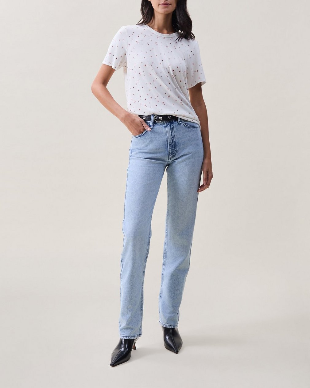 A classic crewneck tee. With short-sleeves, a slim fit, and an allover poppy floral print. Crafted from a soft cotton-blend jersey and finished with a subtle logo tab.