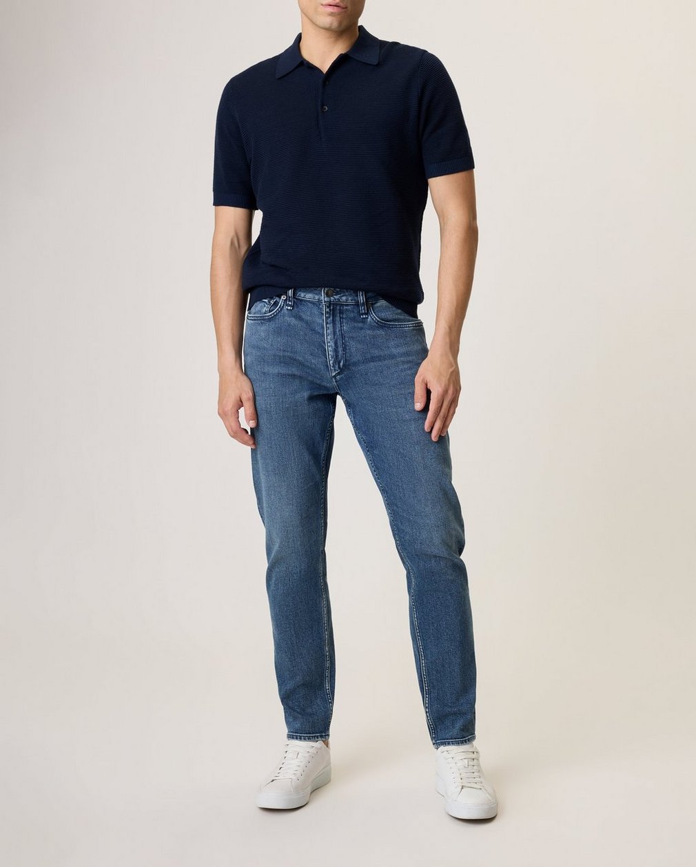 The rb 3 Athletic Fit. Mid-rise, additional room through the hip and thigh, with a tapered leg (just like our popular Fit 3 Jean). Crafted from Authentic Stretch, a selvedge-inspired denim with an optimal touch of shape-holding stretch. In Ardmore, a mid-light indigo wash.
