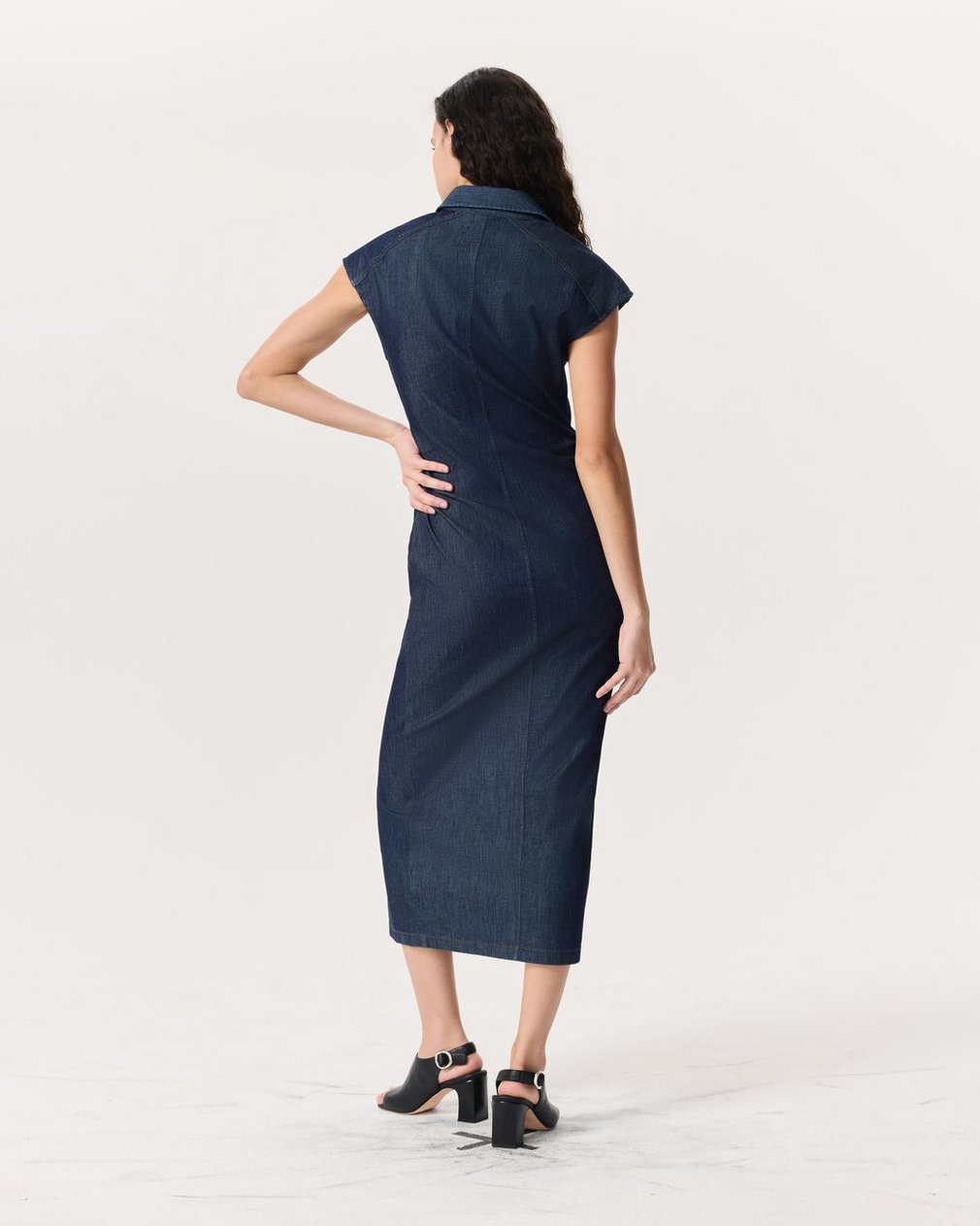 Slim fit midi-length dressSize Small: Front length 52 1/2″, chest 35″, sweep 35 1/2″Model is 5’10” wearing size 2