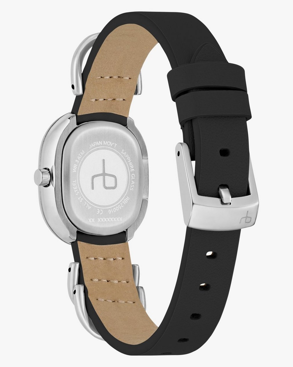 A modern take on a timeless shape. The Rory features a black dial under a flat sapphire crystal set inside an oval-shaped recycled steel case. Its slim black strap is crafted from Italian leather and finished with polished loops in a subtle nod to our signature hardware. Refined, versatile, and made to wear with anything, whether on or off the clock.Born from a legacy of metalwork and precision design, our debut watch collection reflects rag & bone’s distinctly New York perspective on heritage craftsmanship and modern utility. More than mere timekeepers, each piece is a balance of style and substance, crafted as the ultimate finishing touch for everyday life.