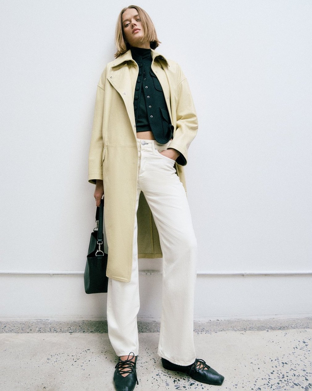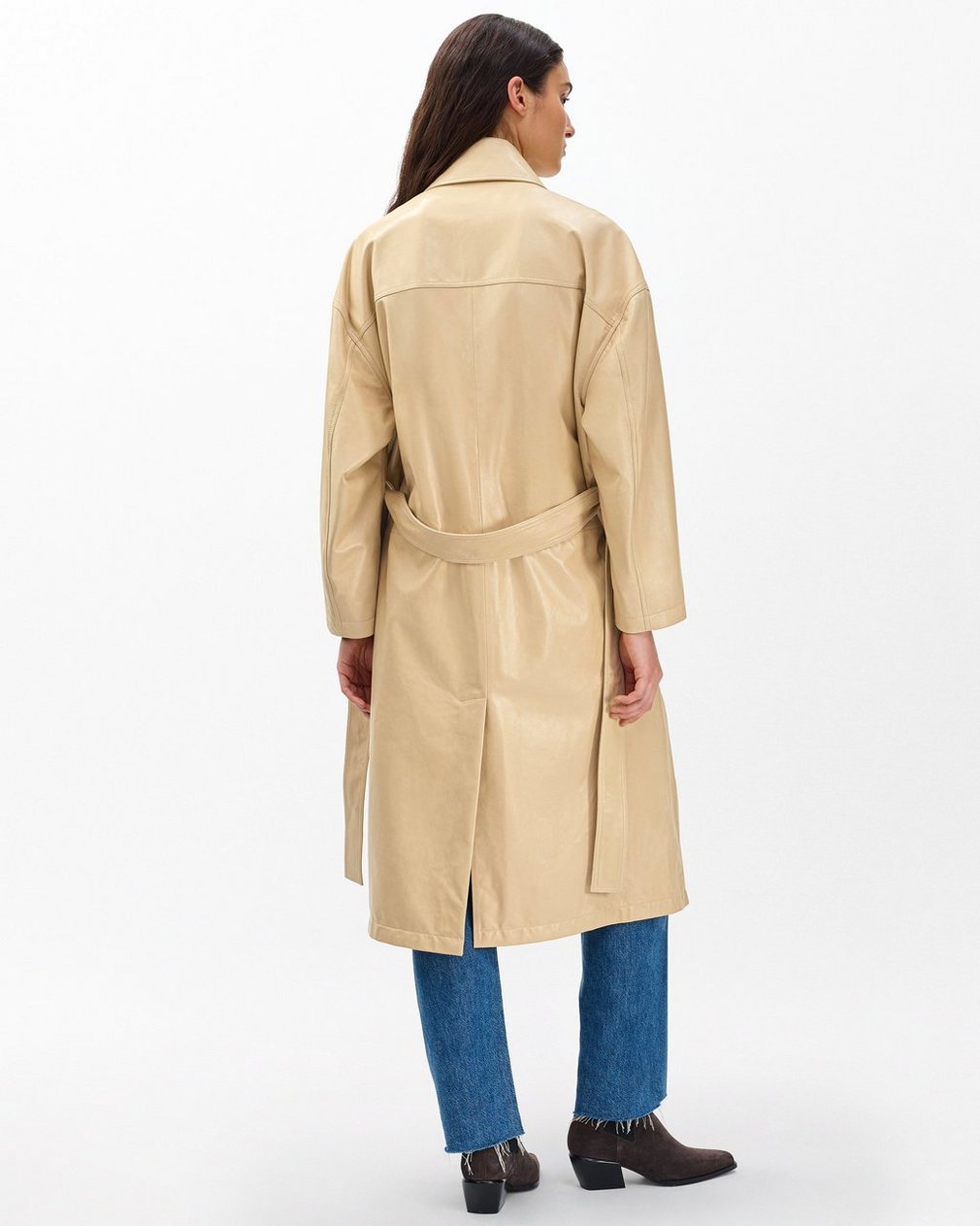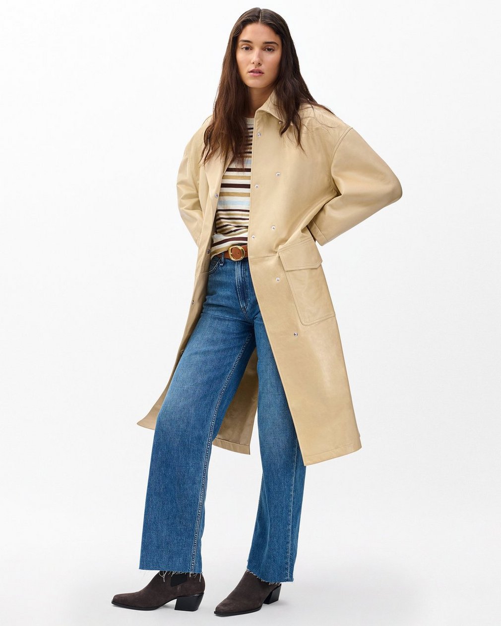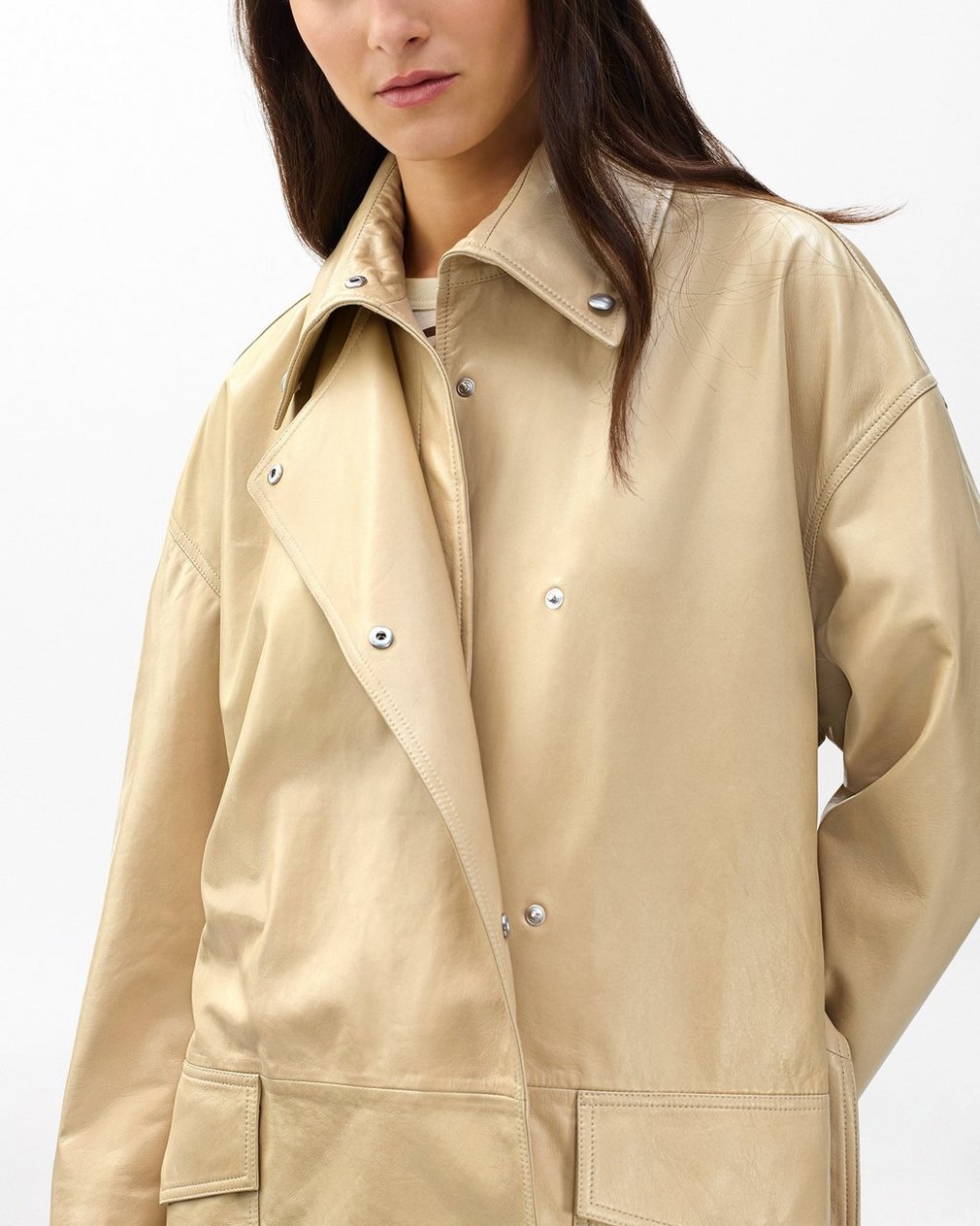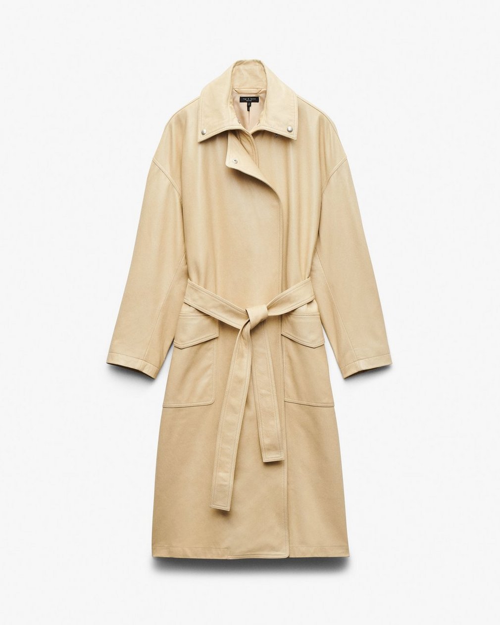 Outerwear at its finest. A sophisticated trench coat crafted from lightweight, buttery-soft lambskin in a rich hue exclusive to us. Finished with elegant details like a hidden asymmetric placket and snapped cuffs. Sculpt its oversized silhouette to your liking using the wide, removable belt.