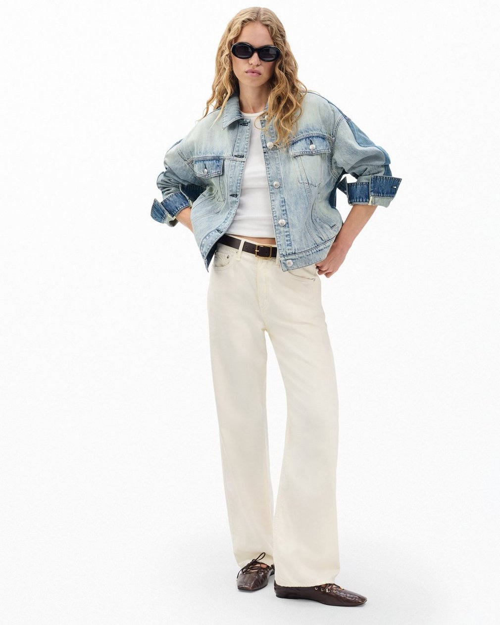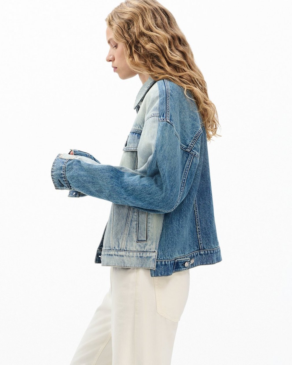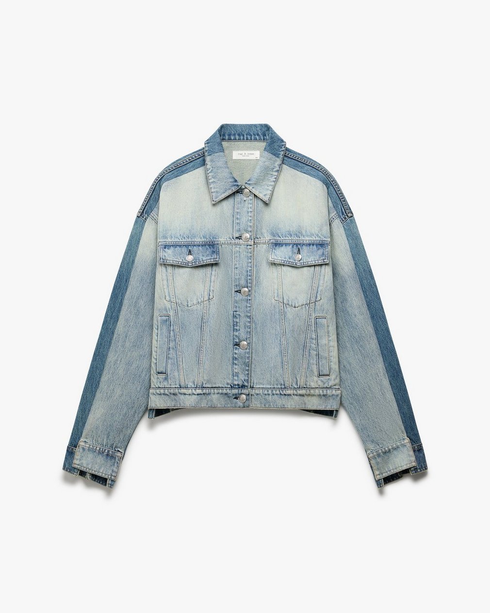 Americana with a twist. We combined the light-indigo front and medium-dark indigo back of two different denim jackets into this one hybrid hero. The asymmetric hem and cuffs further amplify its origin story and composite character. It’s crafted from Lightweight Rigid non-stretch denim that provides structure, but breaks in over time for a soft and comfortable feel. Let it speak for itself over a laid-back dress, or double its effect by pairing with the matching Shea Ankle Relaxed Straight Jeans. This style runs large, so for the closest fit, consider sizing down.