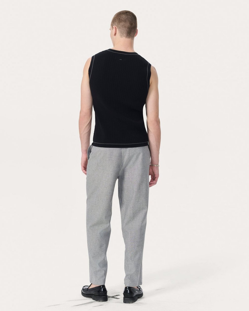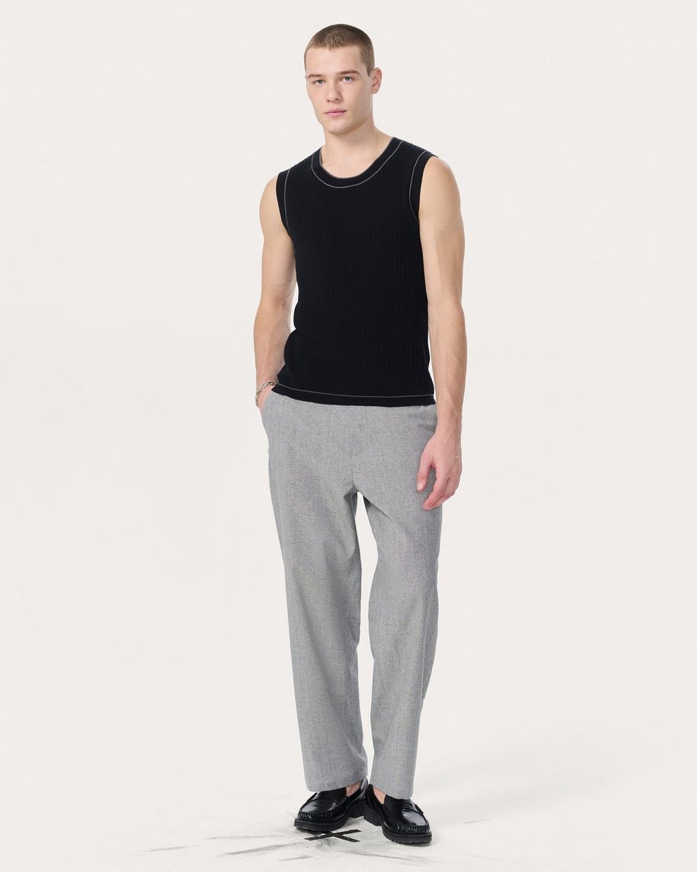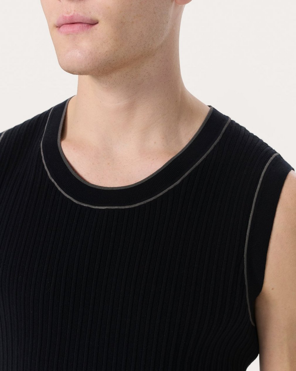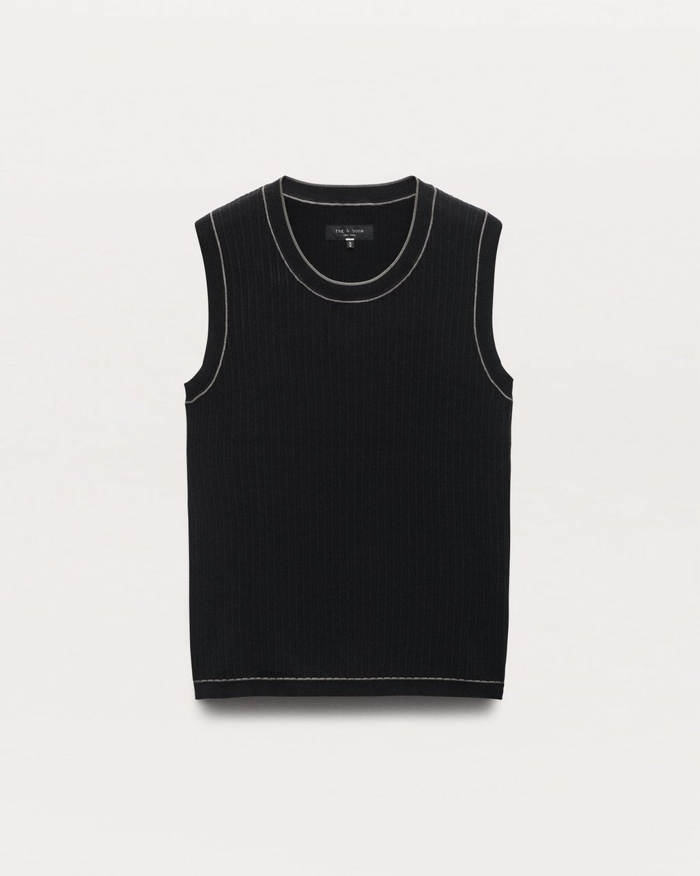 A cut above. This elevated take on the classic tank is crafted from a denser cotton blend with a refined ribbed stitch. Finished with contrast seams, it’s a distinctive top to wear alone on warmer days or layered under a blazer or light jacket.
