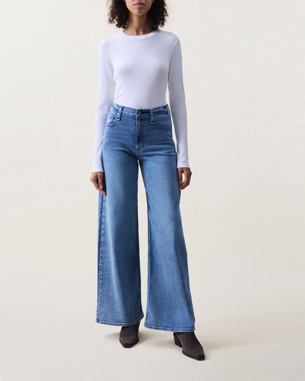 The Serena. Inspired by our high-rise, super-wide cropped Sofie Jeans that are rag & bone office favorites. Crafted from our high stretch denim that smooths, sculpts, and stretches for a perfect fit anytime, anywhere. In Monterosso, a light-medium indigo wash.