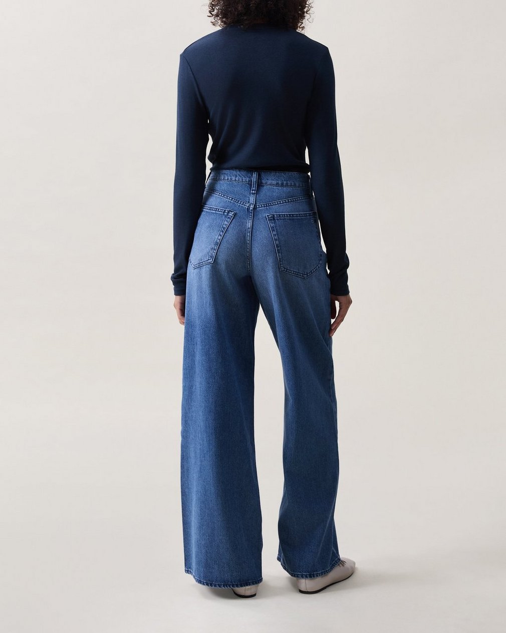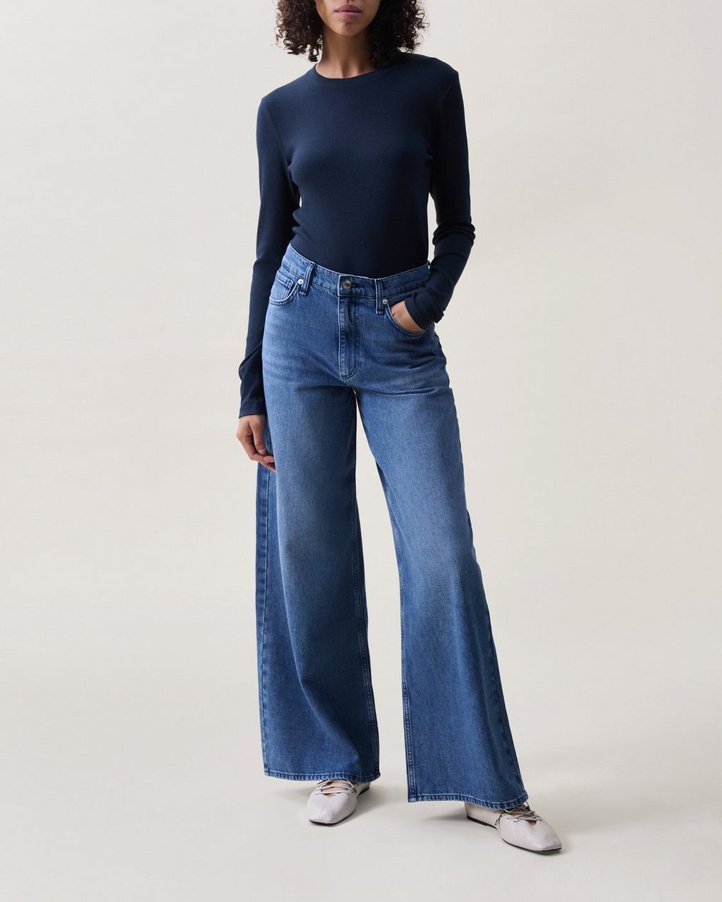 The Serena. Inspired by our high-rise, super-wide cropped Sofie Jeans that are rag & bone office favorites. Crafted from Lightweight Rigid non-stretch denim that provides structure, but breaks in over time for a soft and comfortable feel. In Polk, a medium indigo wash.