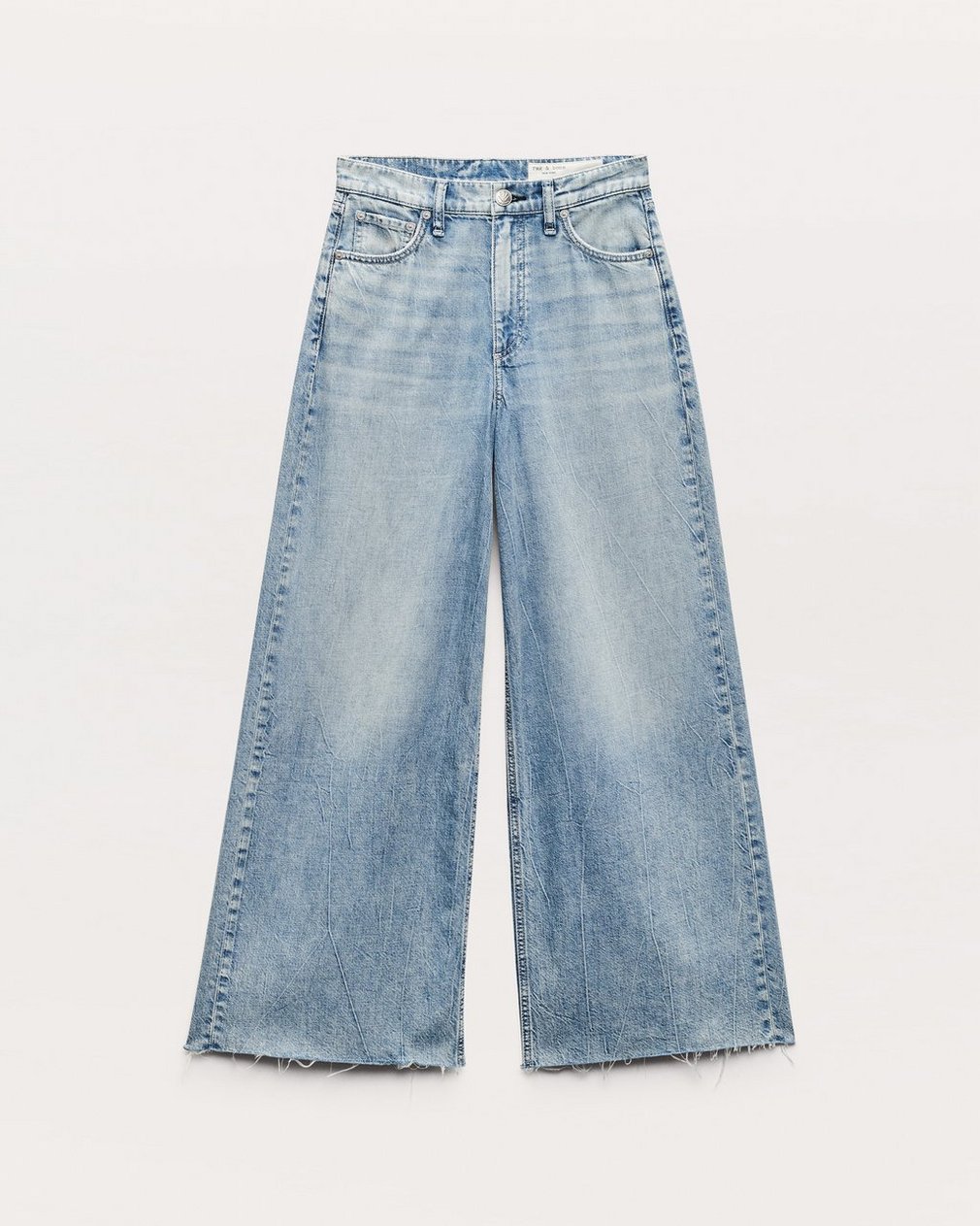 The Sofie. High-rise jeans with super-wide cropped legs that are rag & bone office favorites. Crafted from our Featherweight denim that’s supremely soft and super light, with an easy drape. Feels airy & effortless. In Mira, a light indigo wash with a cut hem.