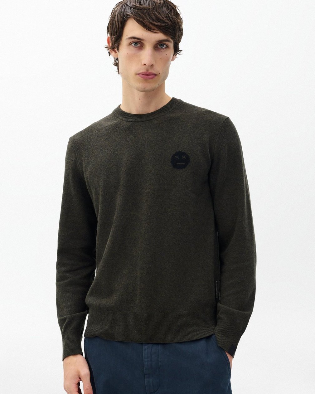 From the archive. Back with new expression. First hand-sketched in 2014, Sour Face is our deadpan ode to New York: sharp, unfazed, and running on caffeine and grit. No logos. No drama. Just clean lines, solid craft, and a bit of attitude. Knit on this classic-fit crewneck sweater in 100% wool.
