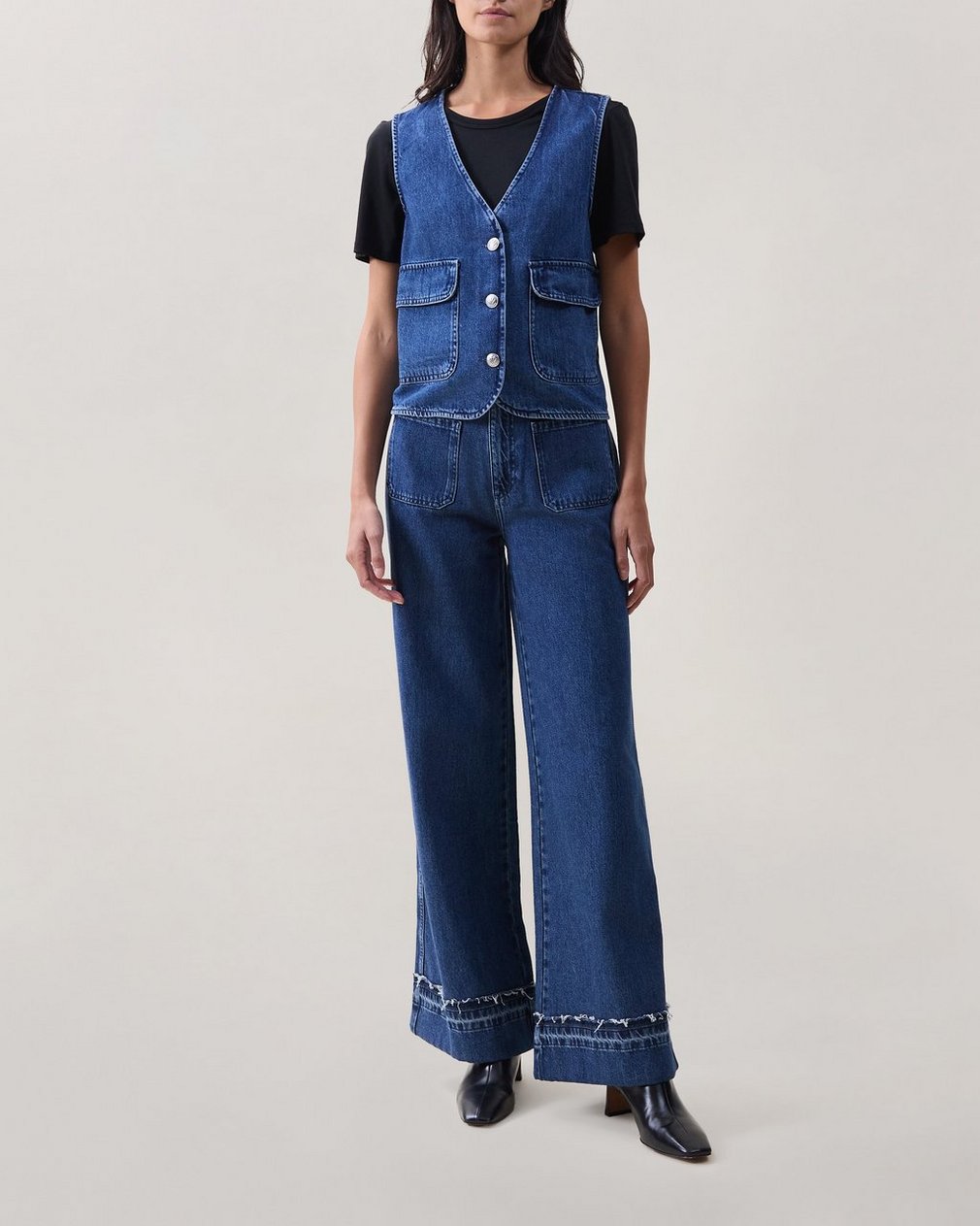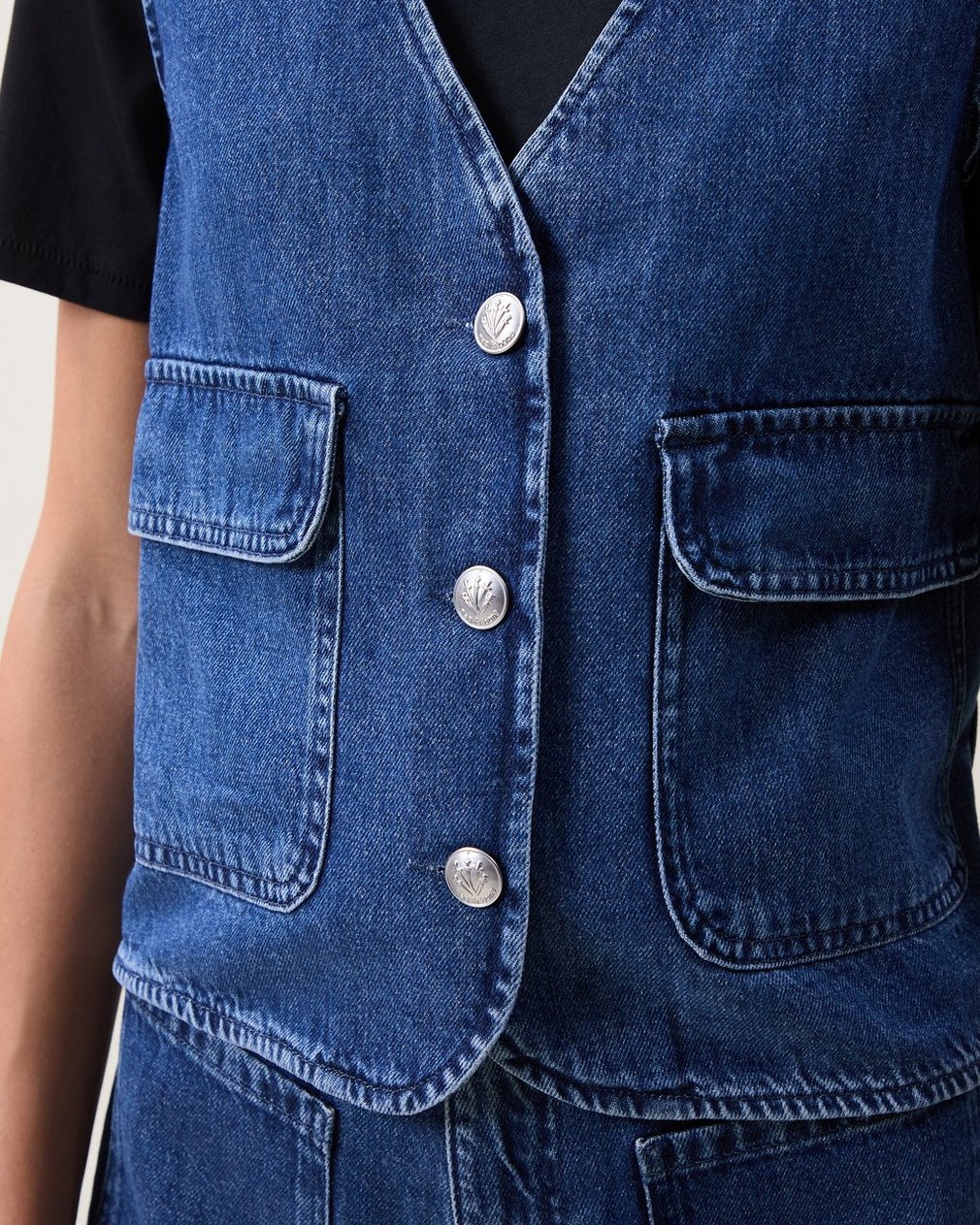 A classic vest featuring flap pockets and signature metal dagger buttons at the front. Crafted from Lightweight Rigid non-stretch denim that provides structure, but breaks in over time for a soft and comfortable feel. In Newnan, a medium-dark indigo wash.