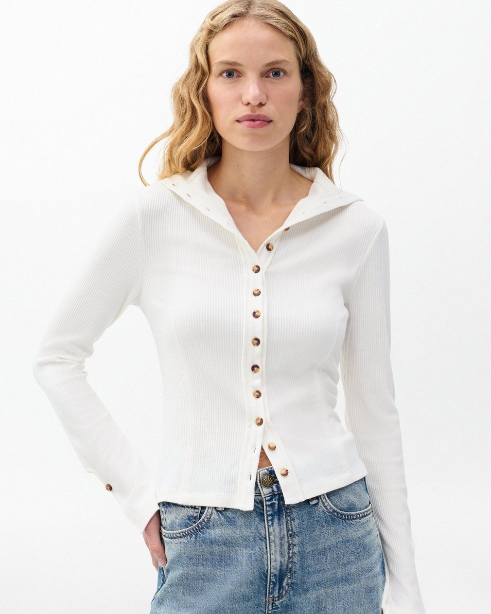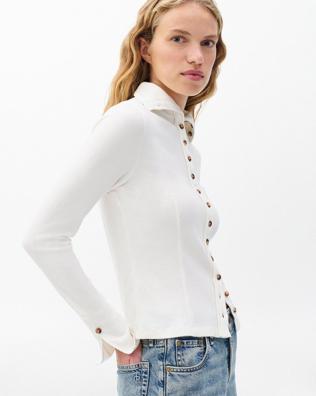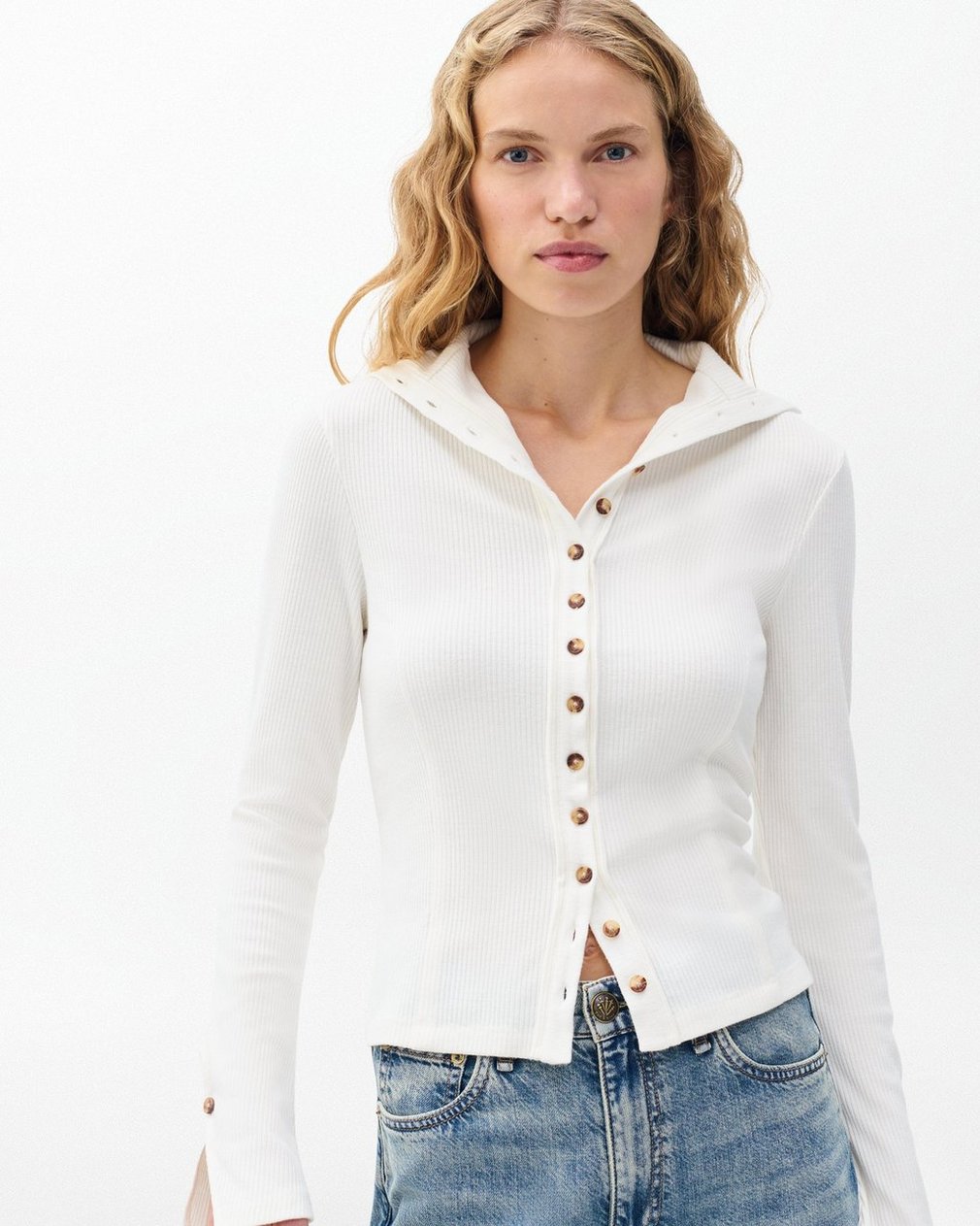 The Knit Ribbed Buttoned Cardigan – Ivory