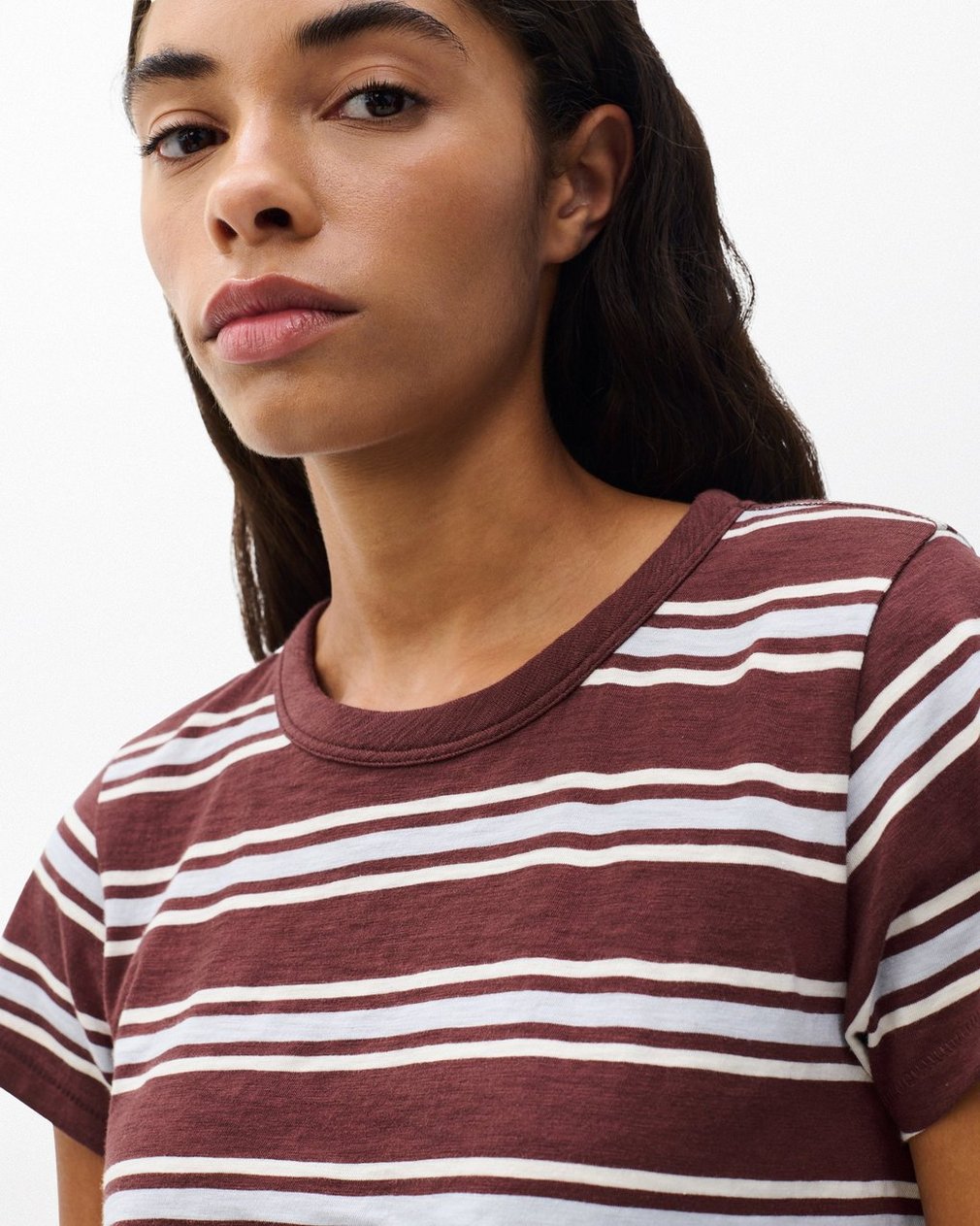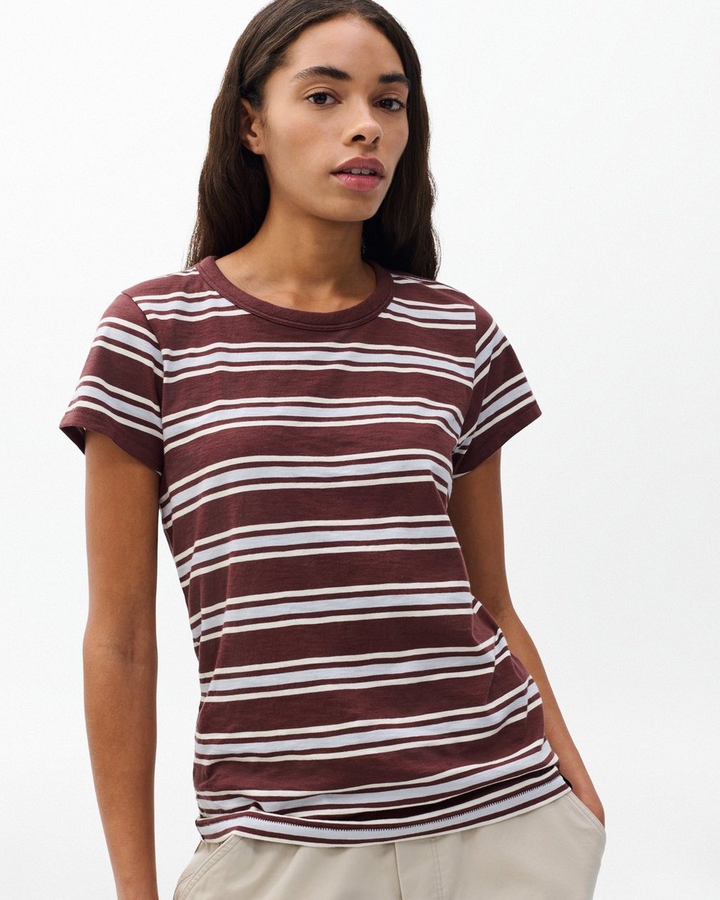 The Slub Striped Tee – Brown Blue Multi