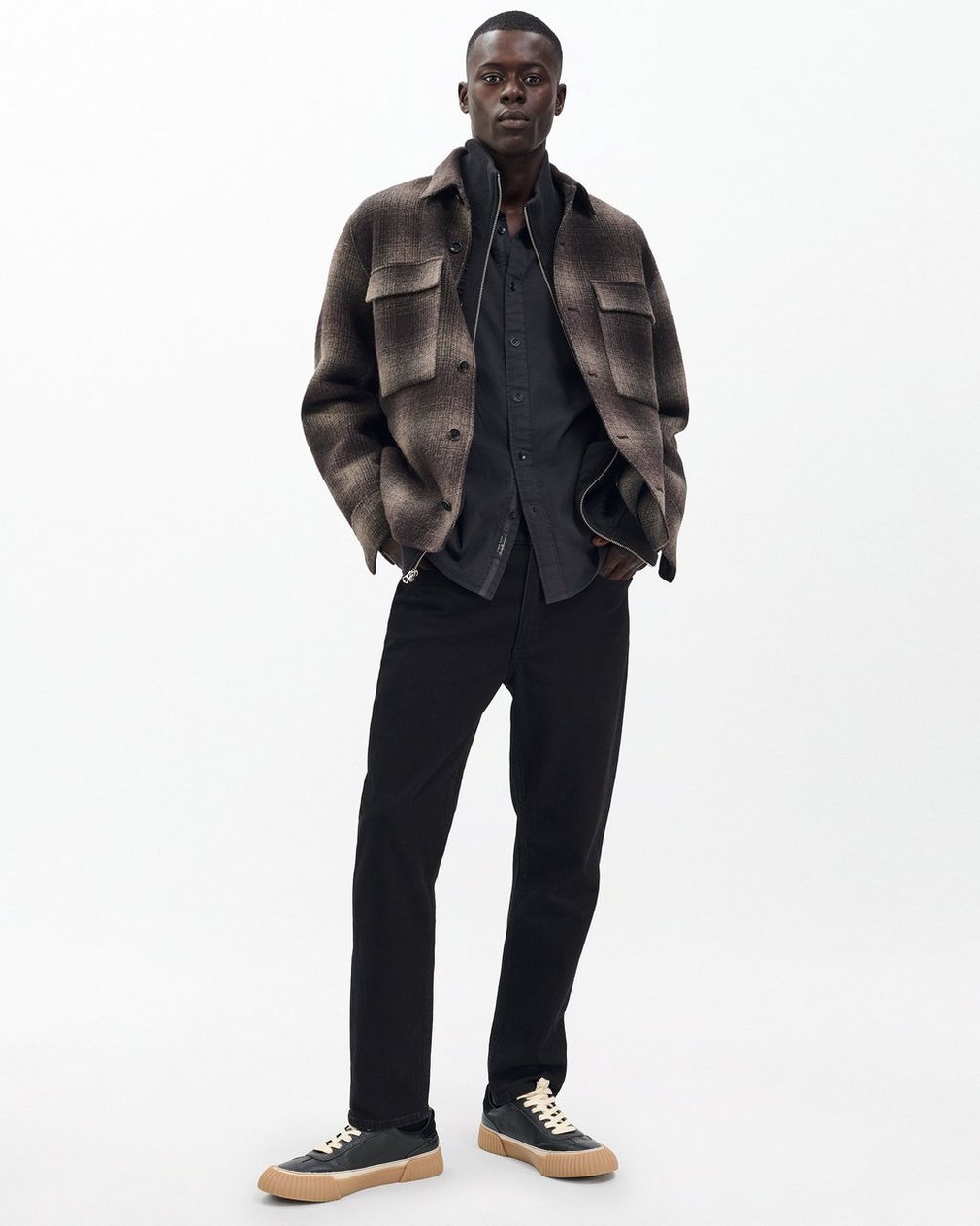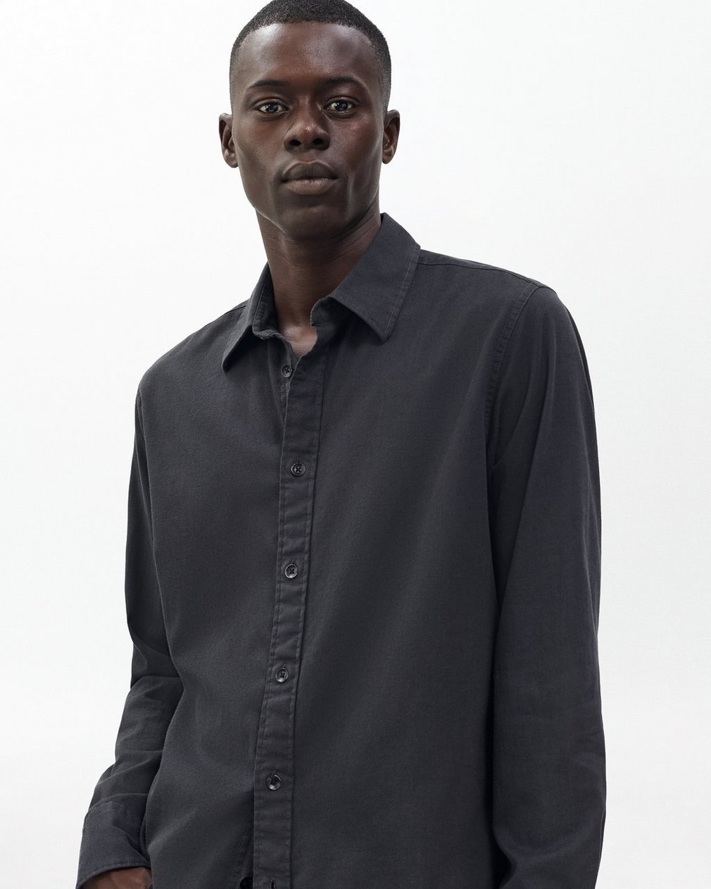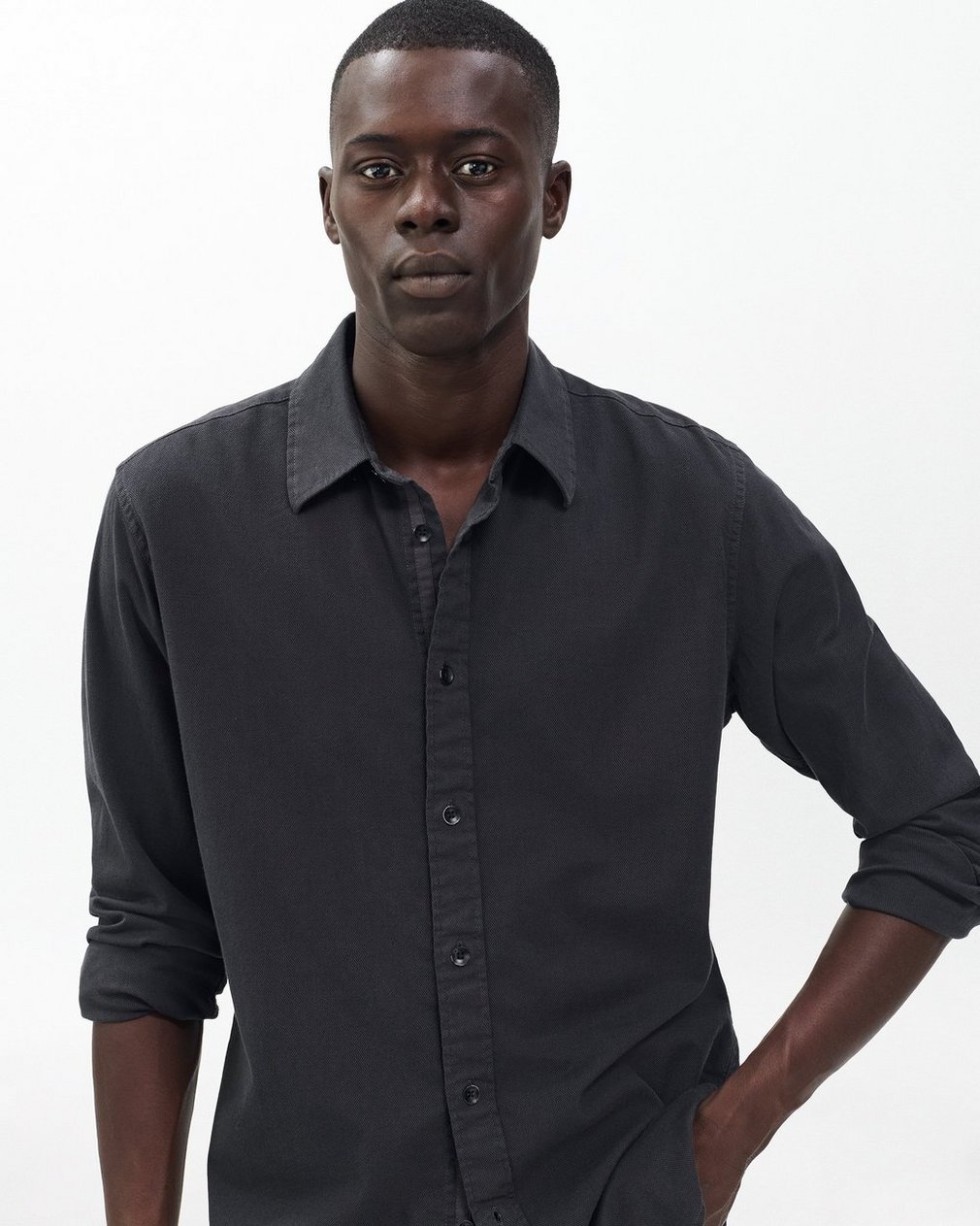 We updated our signature shirt in cotton dobby woven with a comfortable touch of stretch and the subtle texture of a small geometric pattern. Pair yours with an all-black look, or layer with denim for subtle contrast.