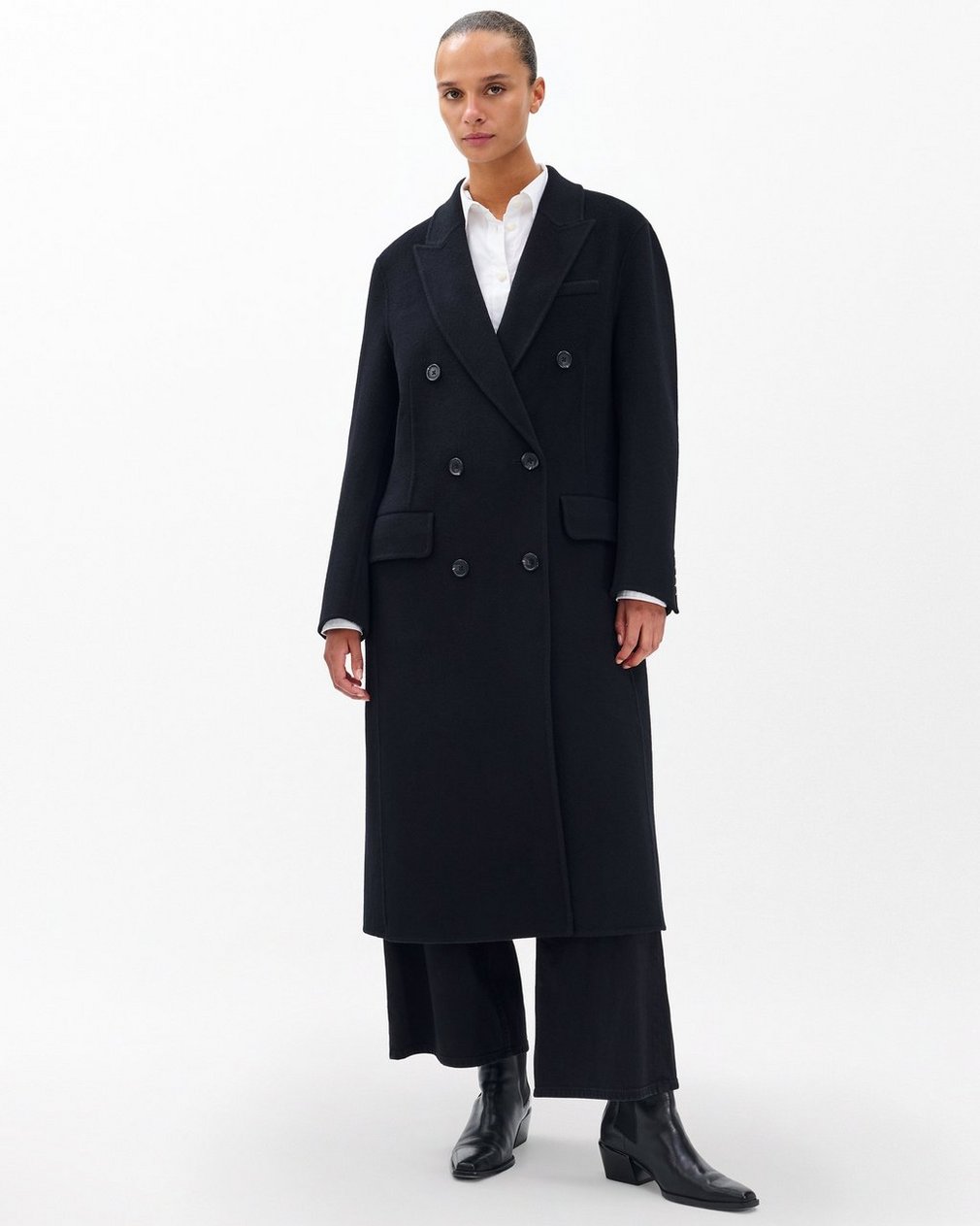 Classic with a modern twist. This trench silhouette falls below the knee in a roomy, relaxed fit. Crafted from a soft wool, with a button closure down the front and on the cuffs for subtle detail.