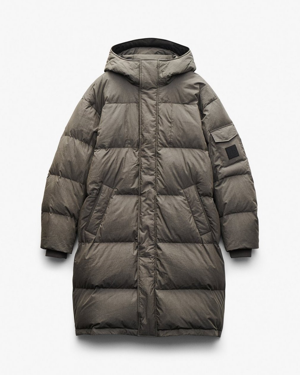Built for the coldest days. This knee-length down jacket combines a durable cotton blend with frigid-weather features like plush insulating fill, a hidden zip- and snap-front, and plenty of sleek zip pockets. Drawcords at the hem and hood let you fine-tune the fit, while the custom lining and subtle signature details throughout make it unmistakably ours.