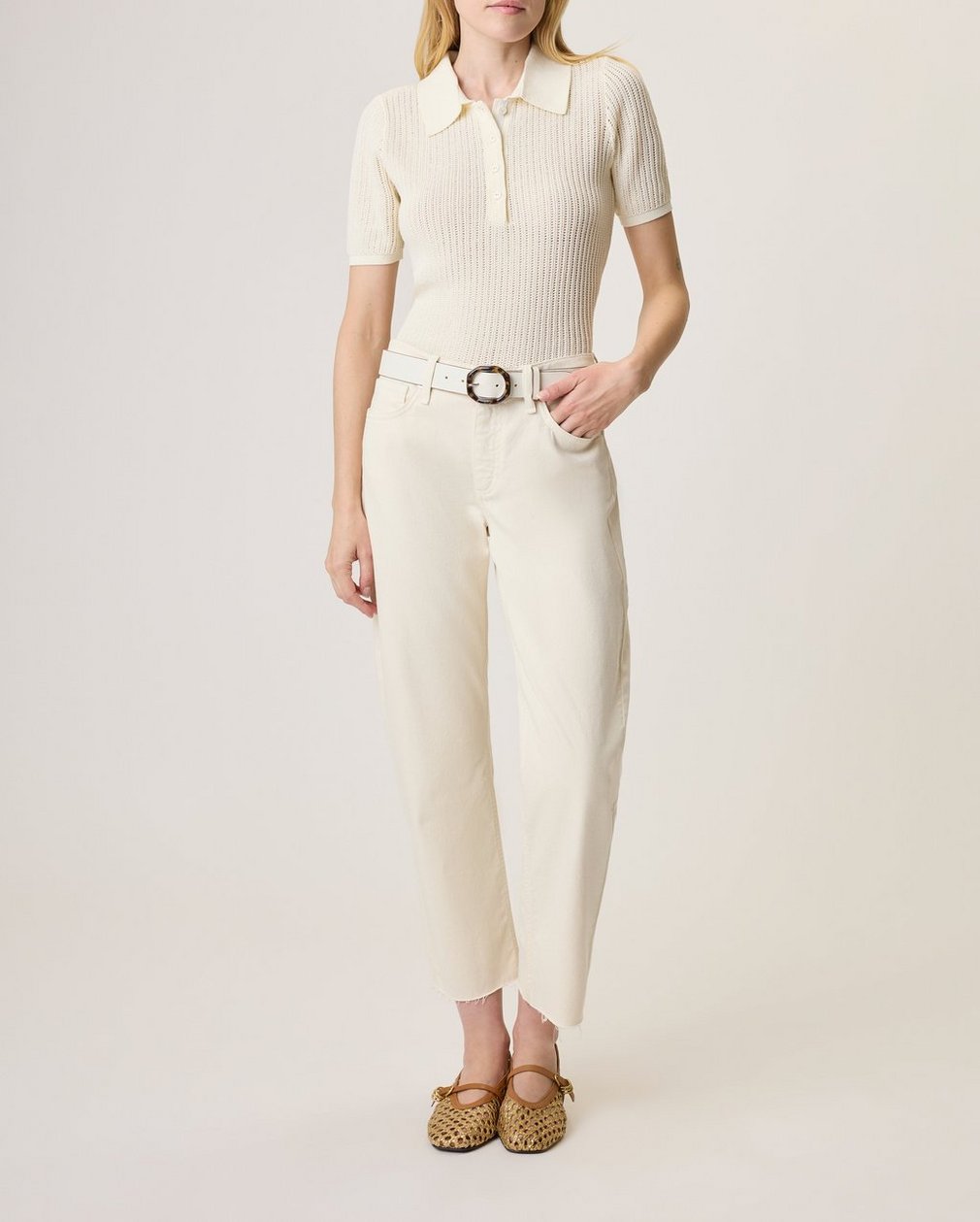 Crafted from an open-knit cotton blend, this update to the classic polo sweater is equal parts cool and refined. The slim-fitting style is finished with gold-tone metal buttons and long-sleeves that hit just right.
