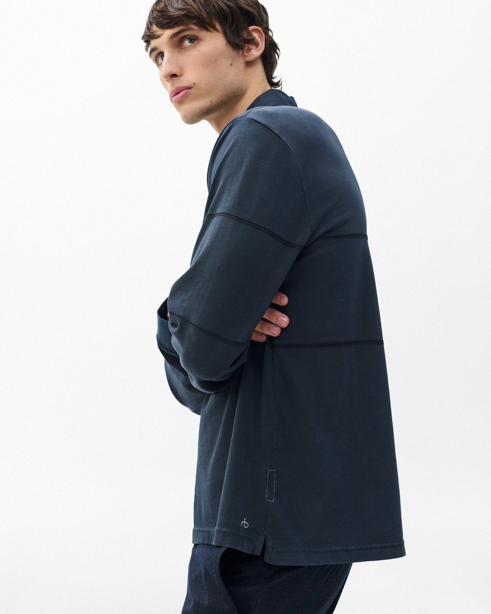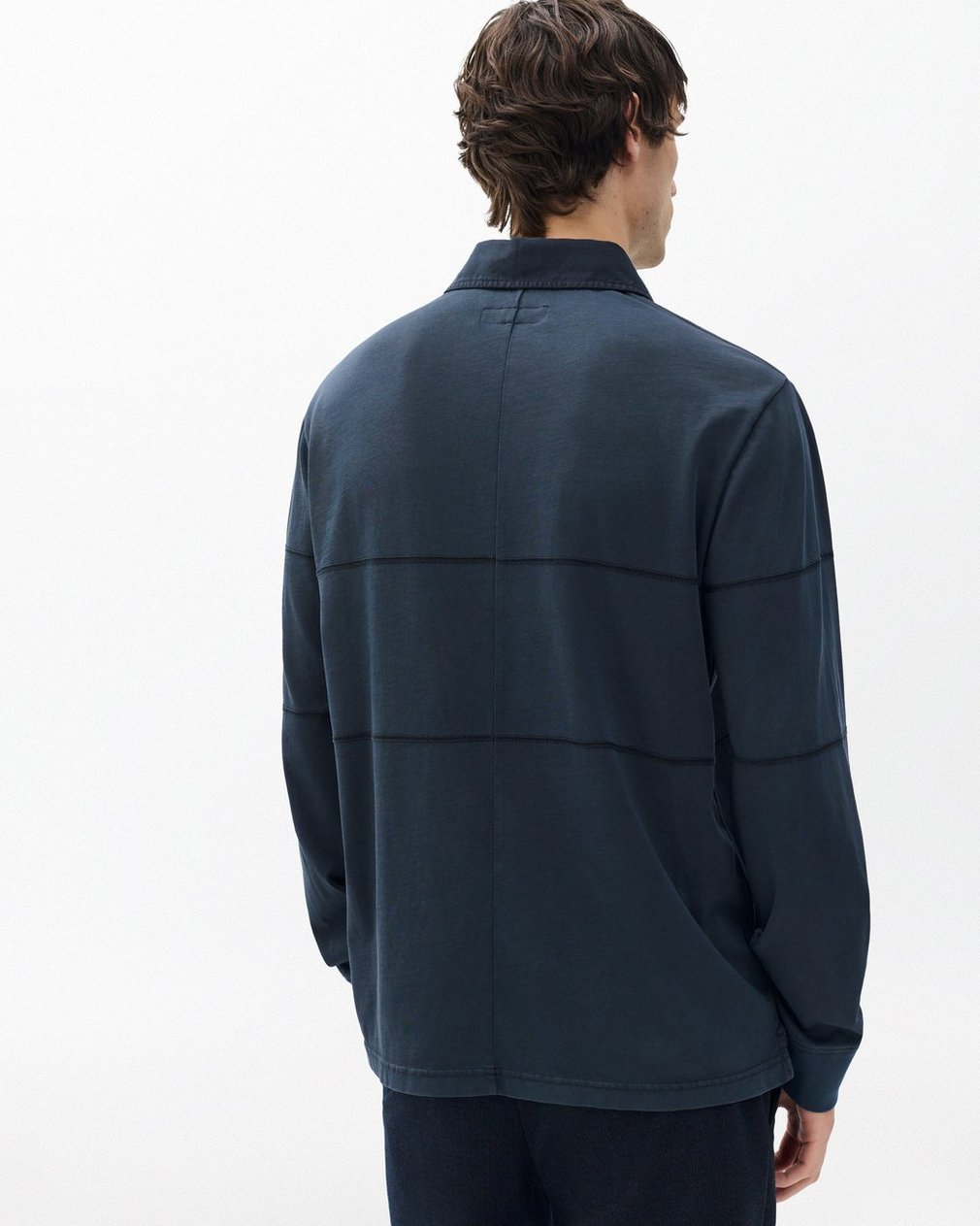 A nod to varsity style. This rugby-inspired long-sleeve shirt is crafted from soft cotton and features sporty stripes in the form of contrast stitching. A faded wash with a vintage feel creates subtle contrast. Wear it your way: buttoned to the neck, or effortlessly open.