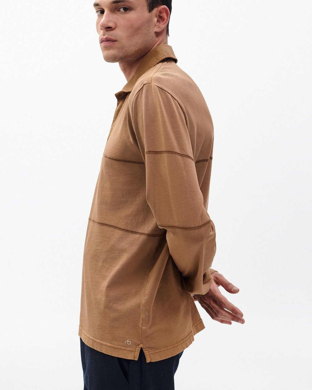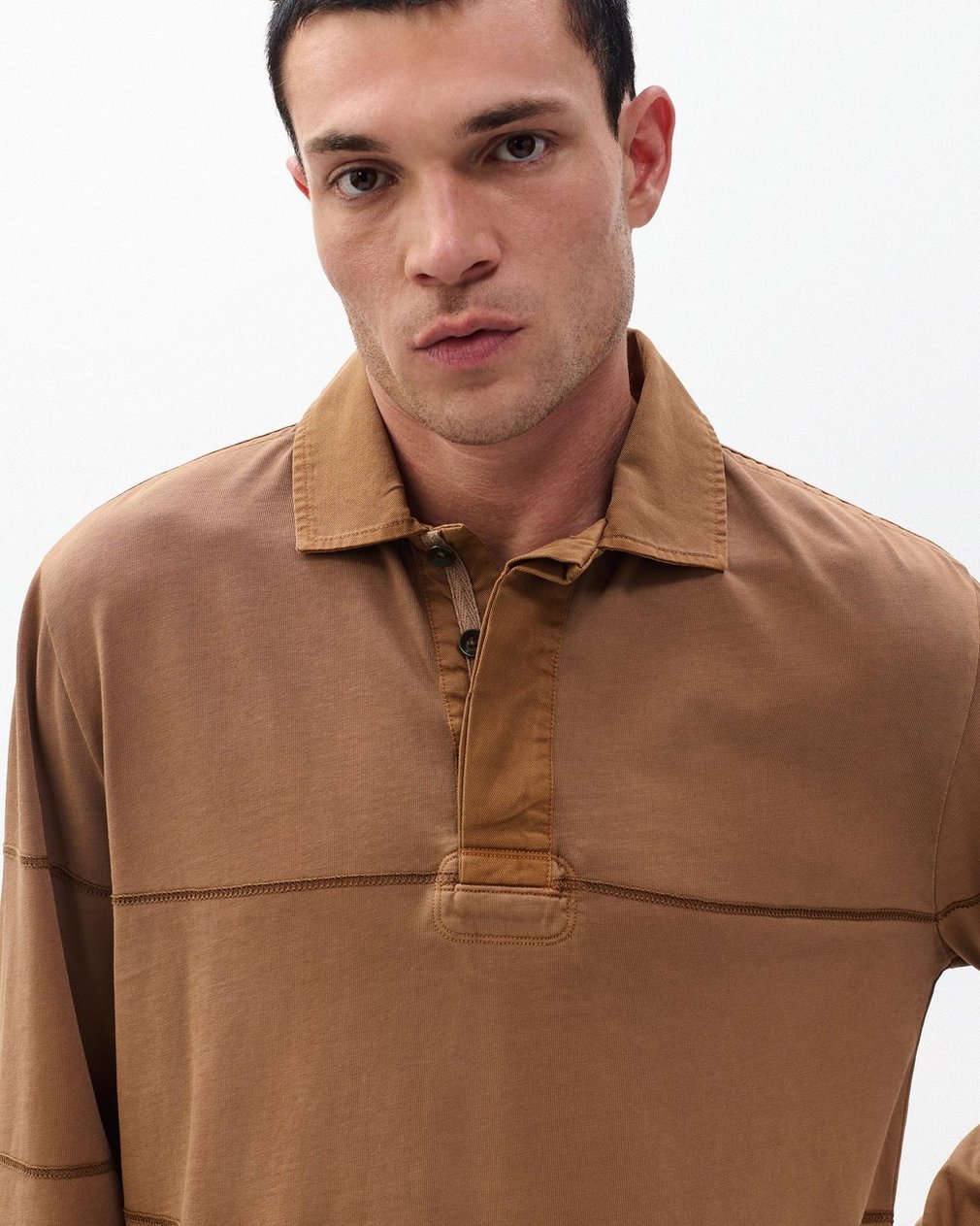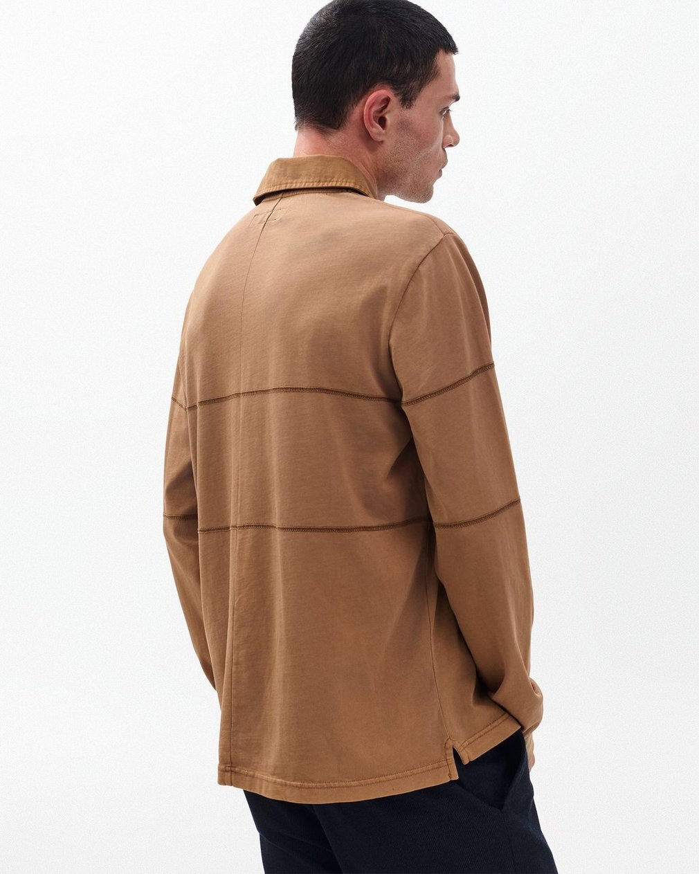 A nod to varsity style. This rugby-inspired long-sleeve shirt is crafted from soft cotton and features sporty stripes in the form of contrast stitching. A faded wash with a vintage feel creates subtle contrast. Wear it your way: buttoned to the neck, or effortlessly open.