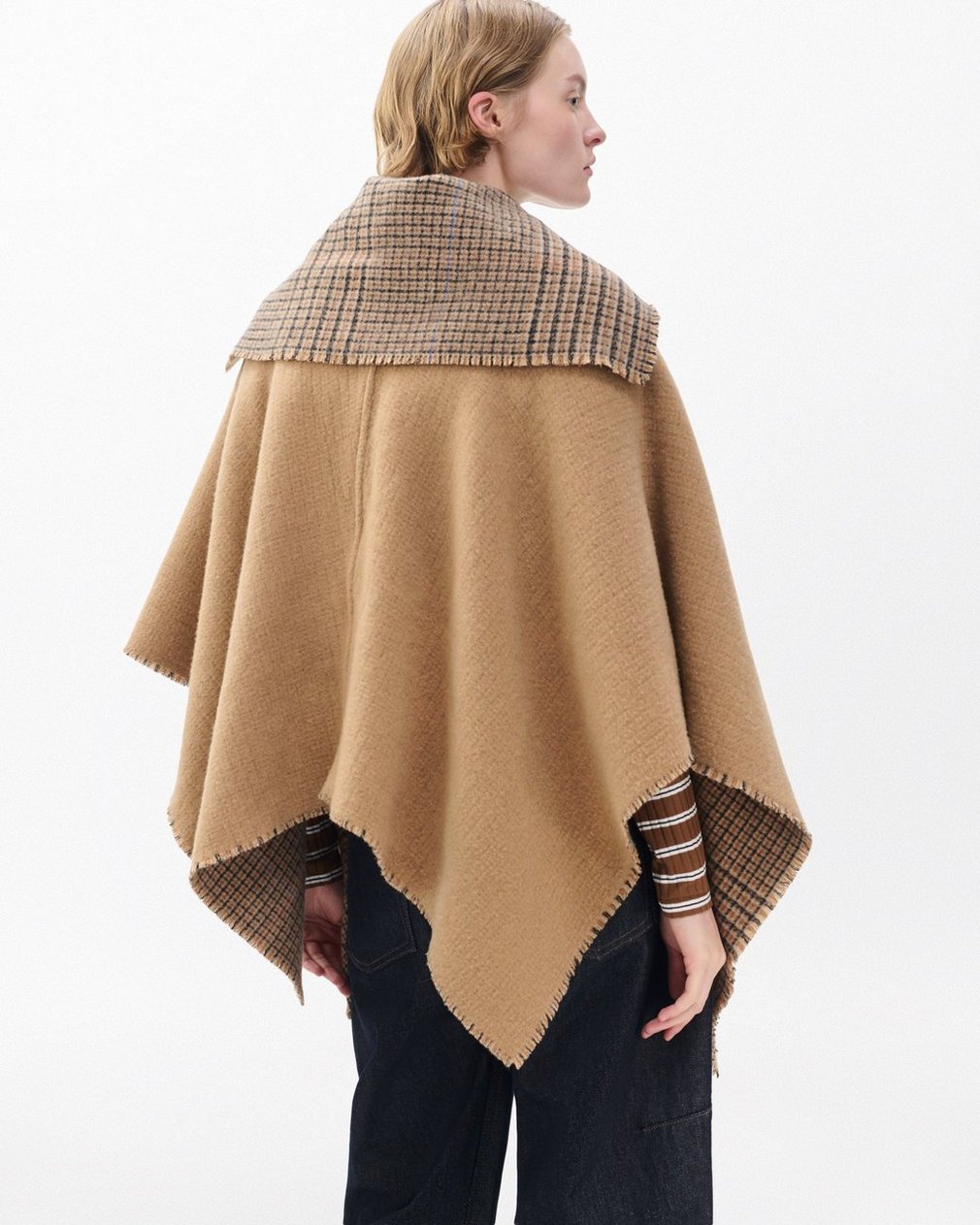 Wendy Reversible Cowl Poncho – Camel Plaid